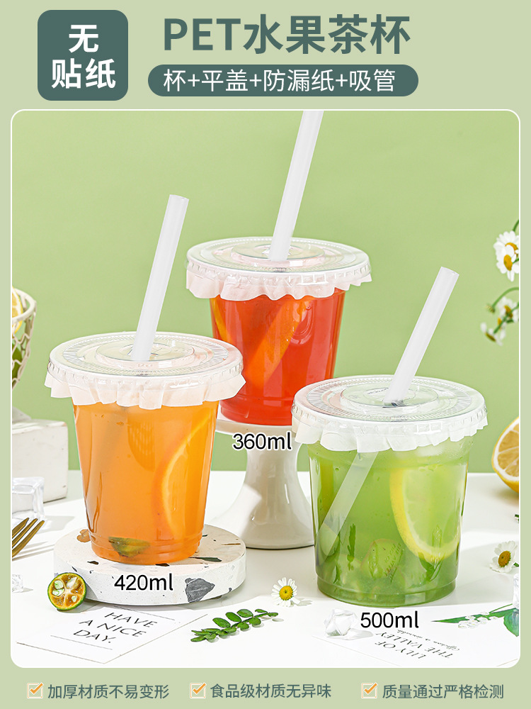 • 갓 짜낸 오렌지 주스 특수형 컵 + 뚜껑 + 두꺼운 빨대 + 누수 방지 종이 - 100개 - 500ml