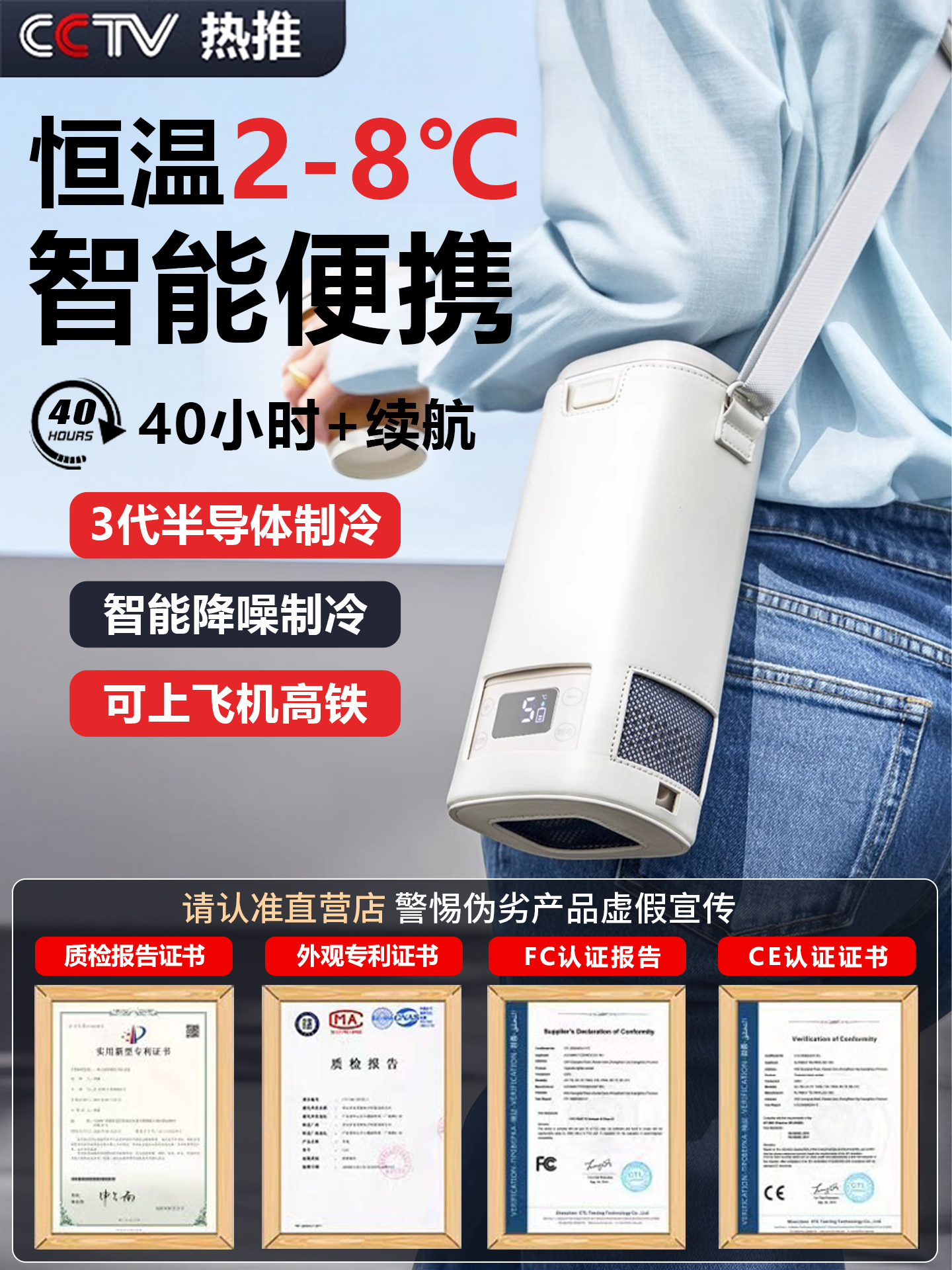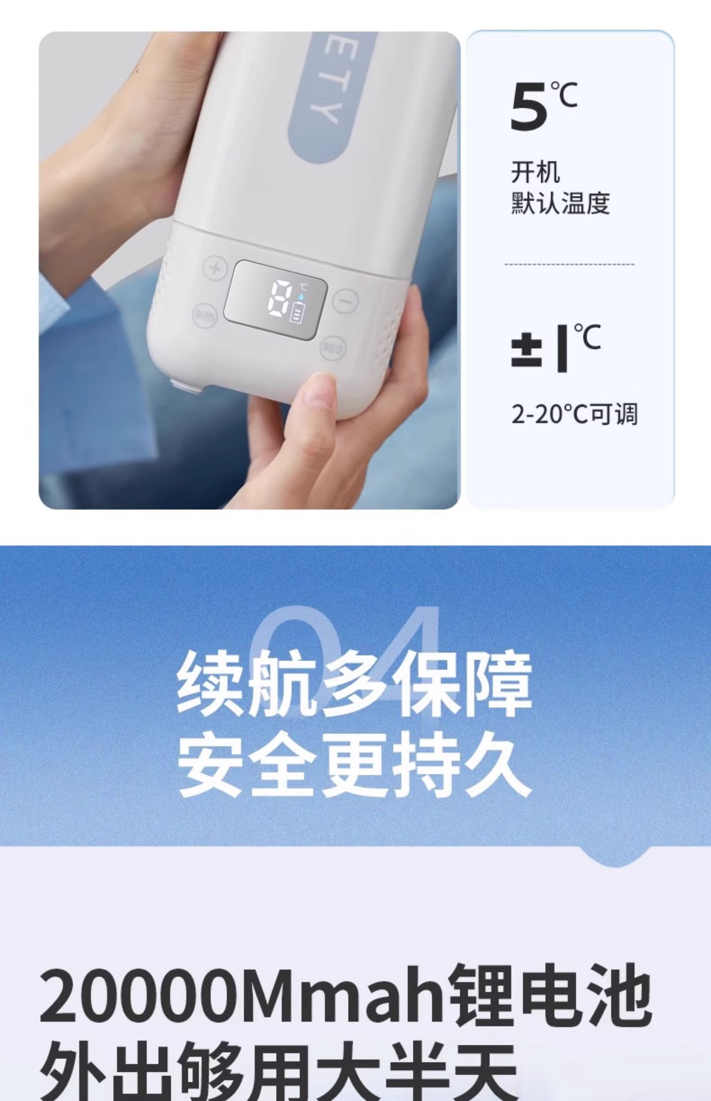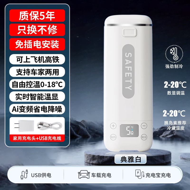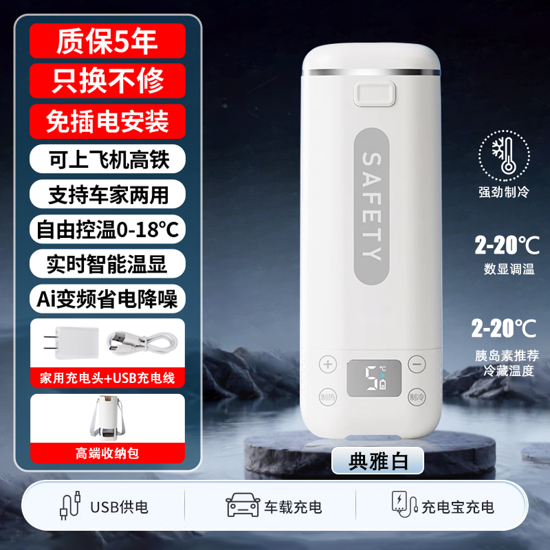 • [우아한 화이트] 배터리 내장 Ai 지능형 주파수 변환 냉동 온도 조절 가능 2-20 ℃ +보관 가방+내장 배터리*2
