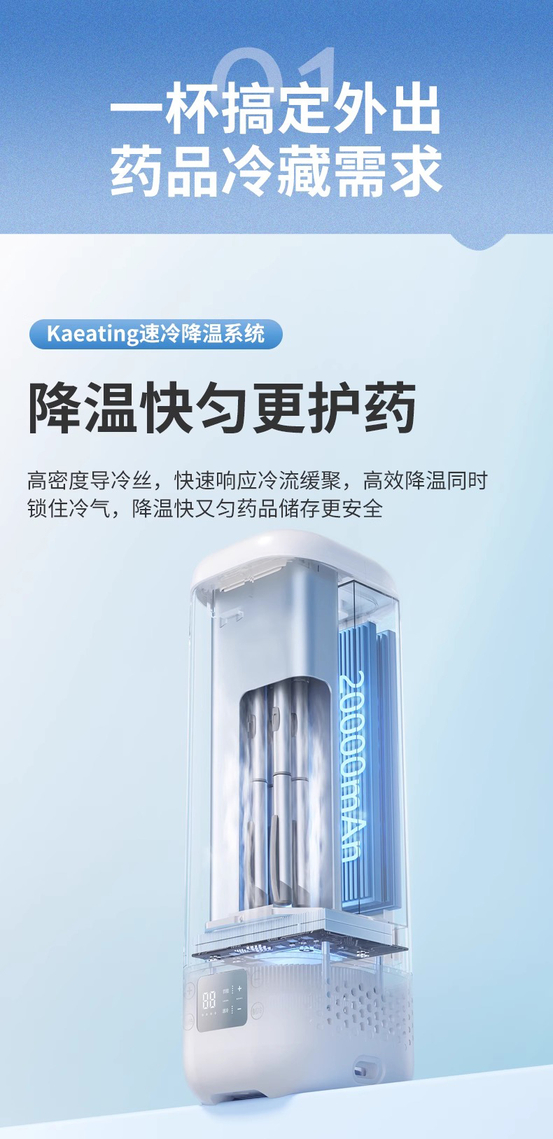 • [회색] 내장 배터리 Ai 지능형 주파수 변환 냉동 온도 조절 가능 2-20 ℃