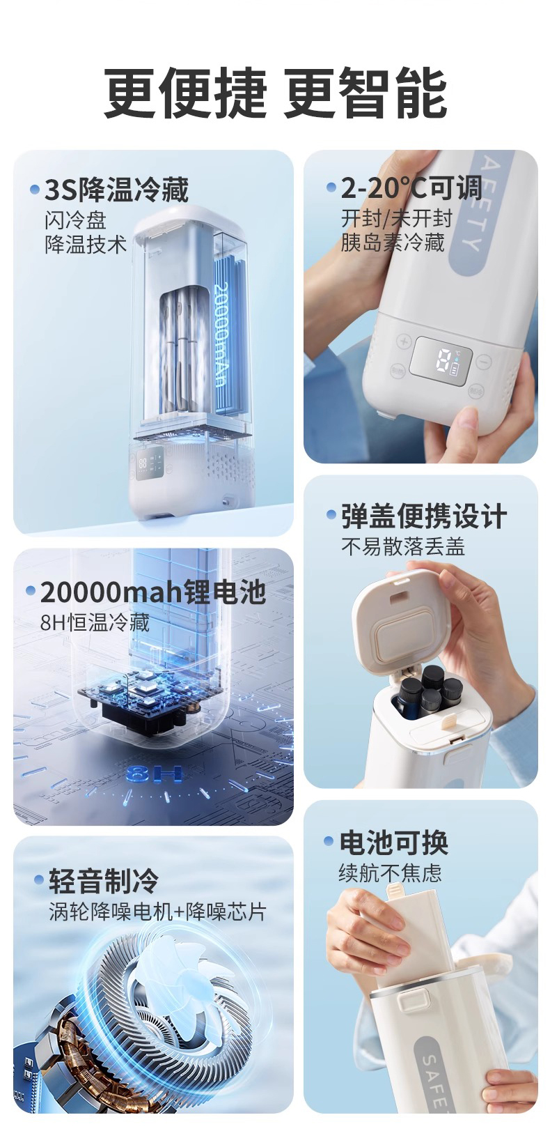 • [우아한 화이트] 내장 배터리 Ai 지능형 주파수 변환 냉동 온도 조절 가능 2-20 ℃ +수납가방
