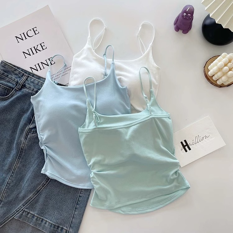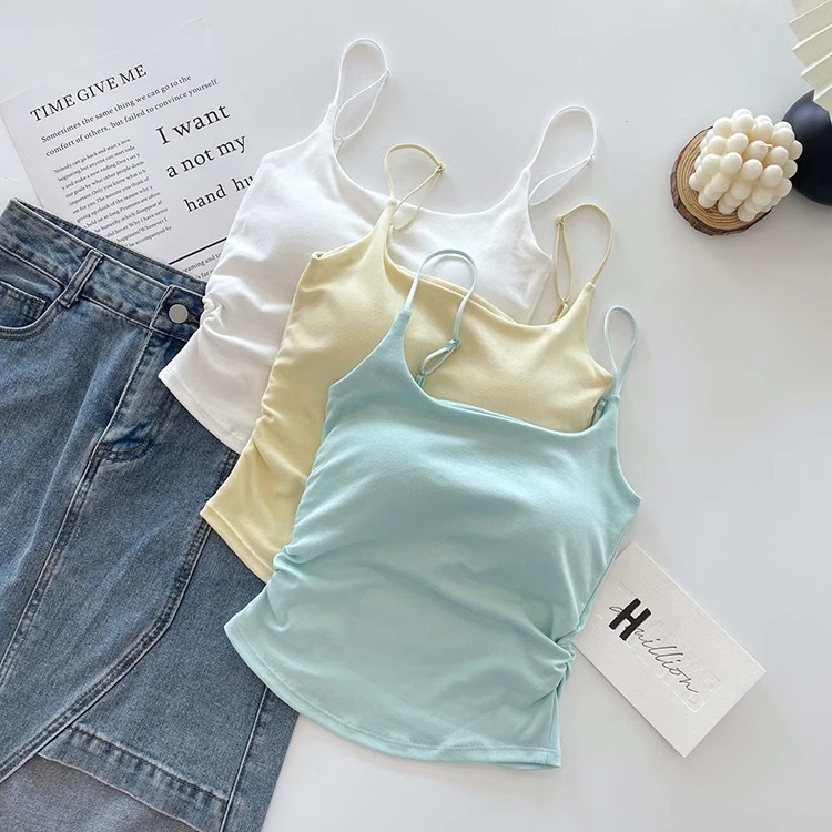 여성을 위한 가슴 패드가 있는 순수한 섹시 스타일의 달콤하고 매콤한 디자인 주름 캐미솔, 여성용 올인원 컵 이너웨어 및 아우터웨어, 아름다운 백탑스토어 가기