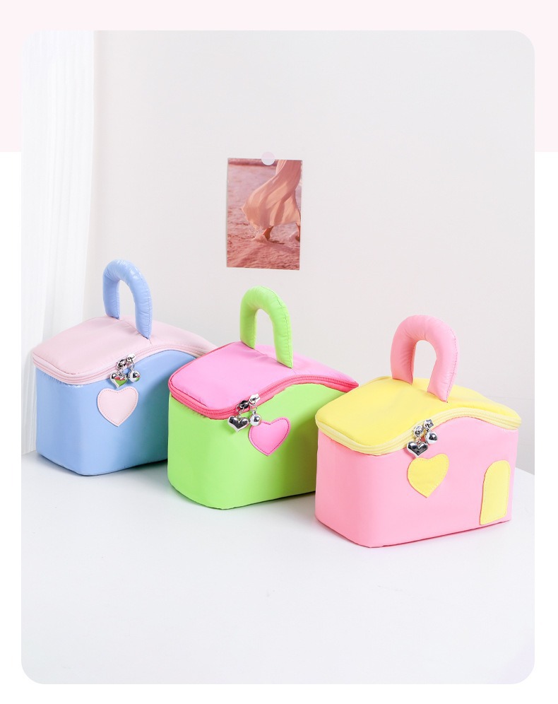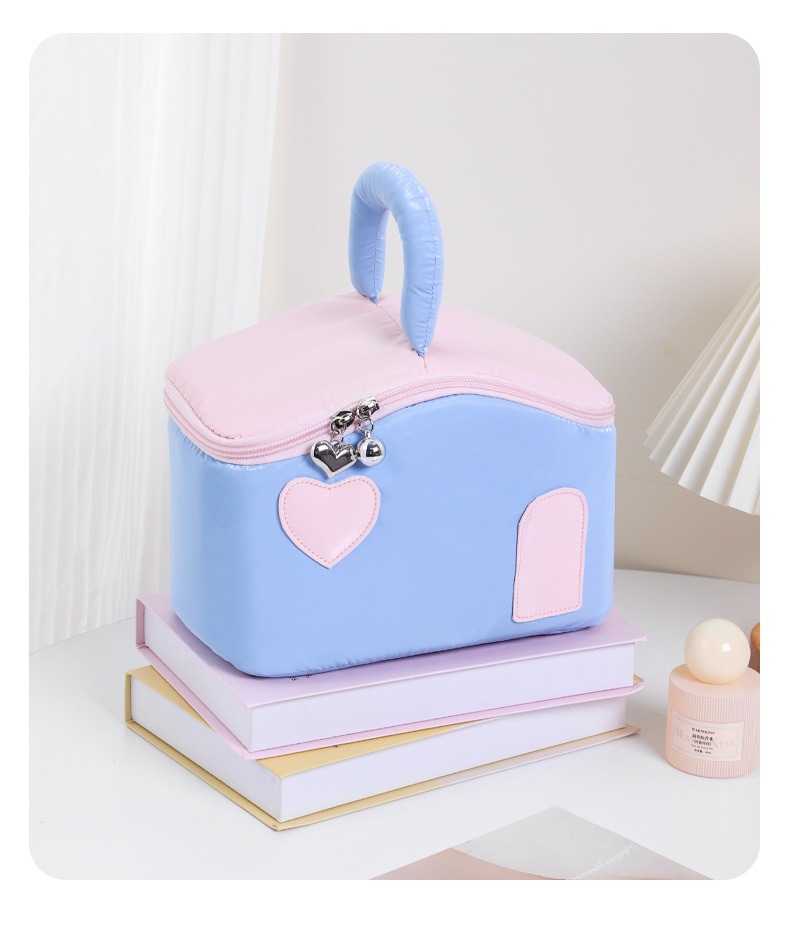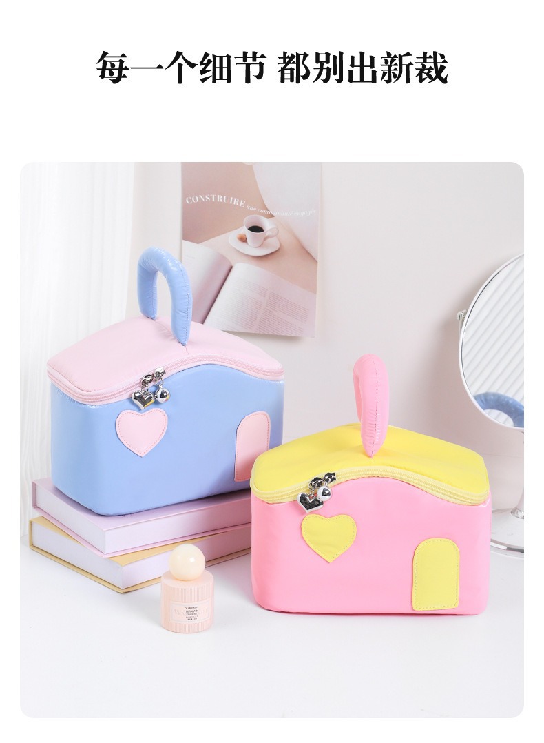 색상 차단 작은 집 귀여운 여성 대용량 휴대용 여행 화장품 세면 용품 가방 장난감 보관 가방 최소 배치 수량 1개스토어 가기