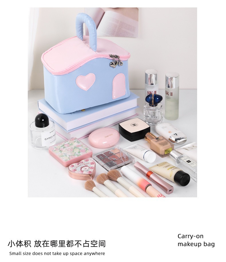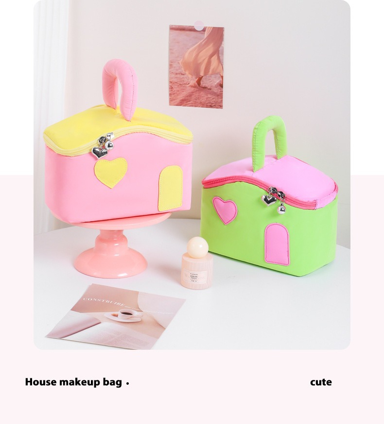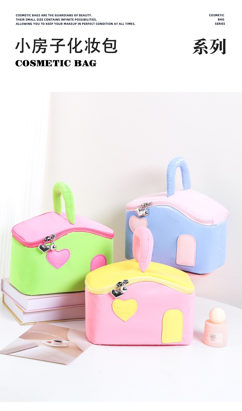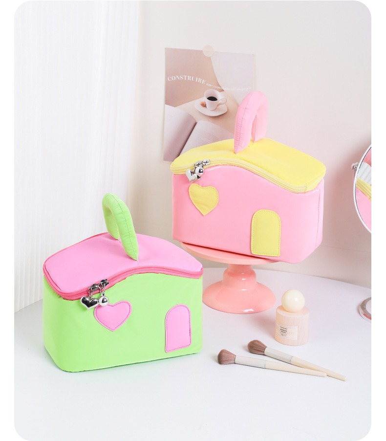 색상 차단 작은 집 귀여운 여성 대용량 휴대용 여행 화장품 세면 용품 가방 장난감 보관 가방 최소 배치 수량 1개