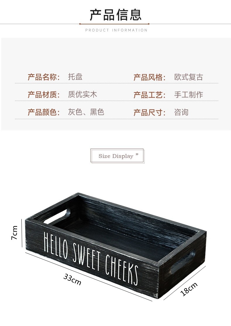 단단한 나무 복고풍 트레이 직사각형 유럽 스타일의 나무 차 컵 트레이 가정용 다목적 방습 및 균열 방지 보관함