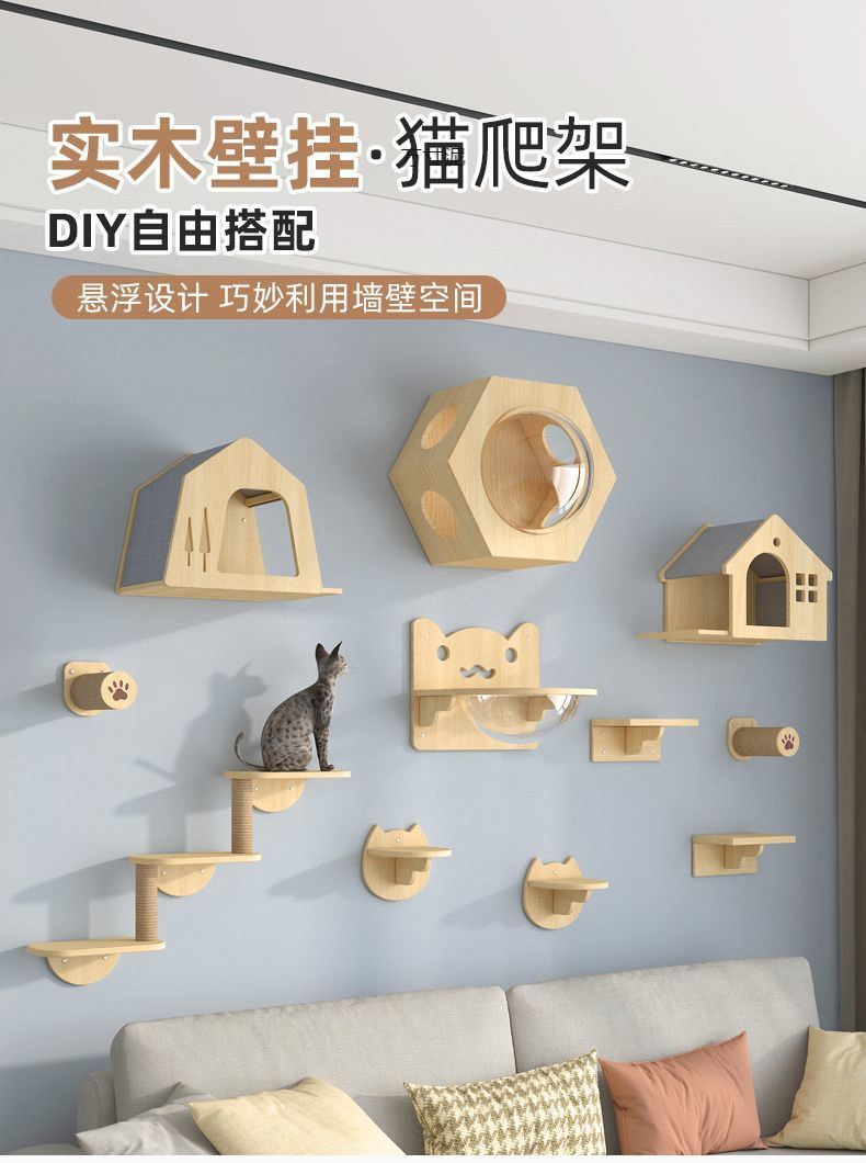 고양이 클라이밍 프레임 소형 DIY 일체형 고양이 클라이밍 프레임 벽걸이형 고양이 둥지 벽걸이형 도매 공장스토어 가기