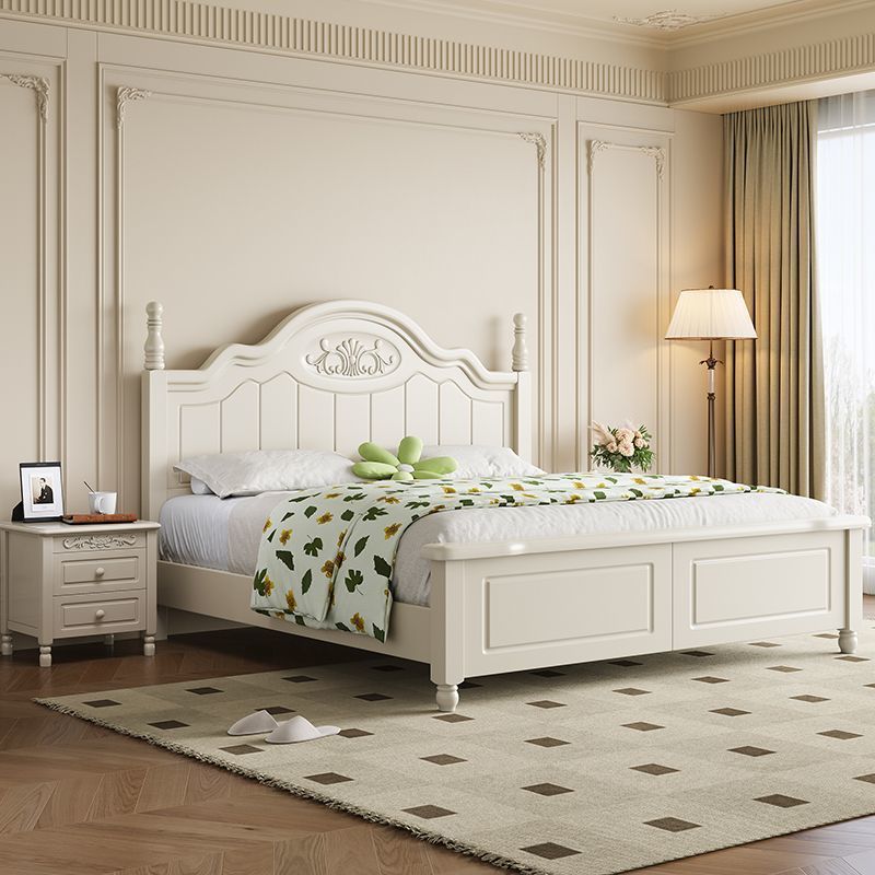 단단한 나무 침대 현대적인 미니멀리스트 싱글 더블 마스터 침실 1.92m 작은 아파트 유럽 스타일의 흰색 공주 침대
