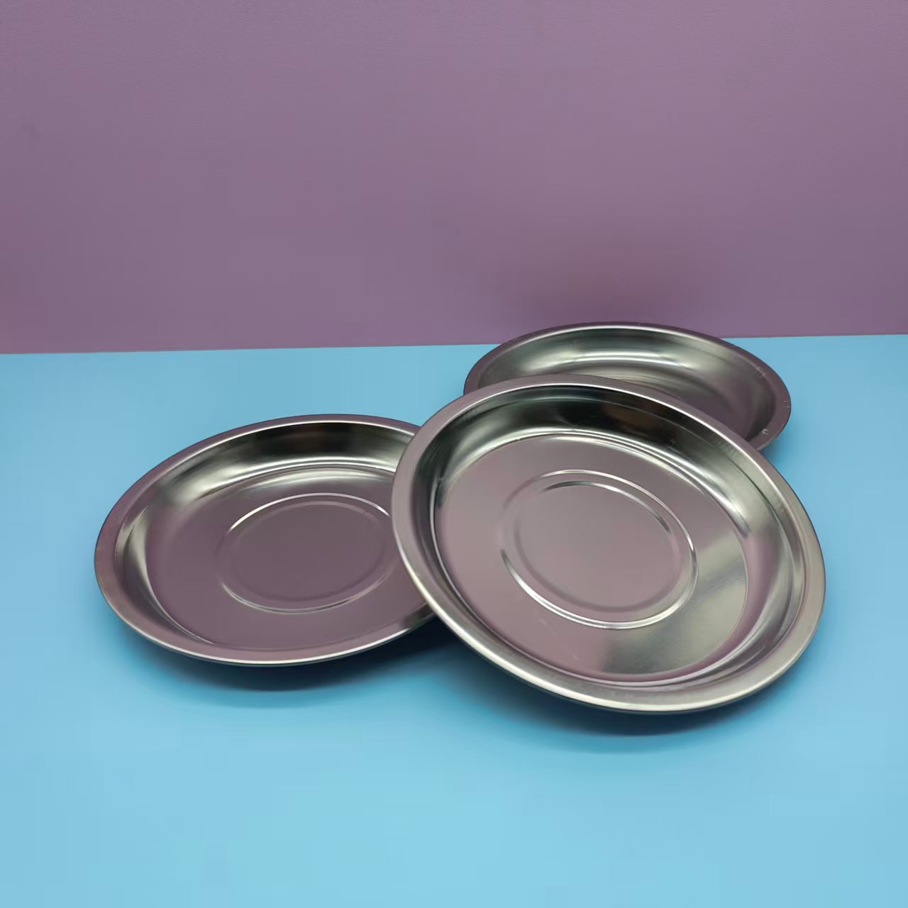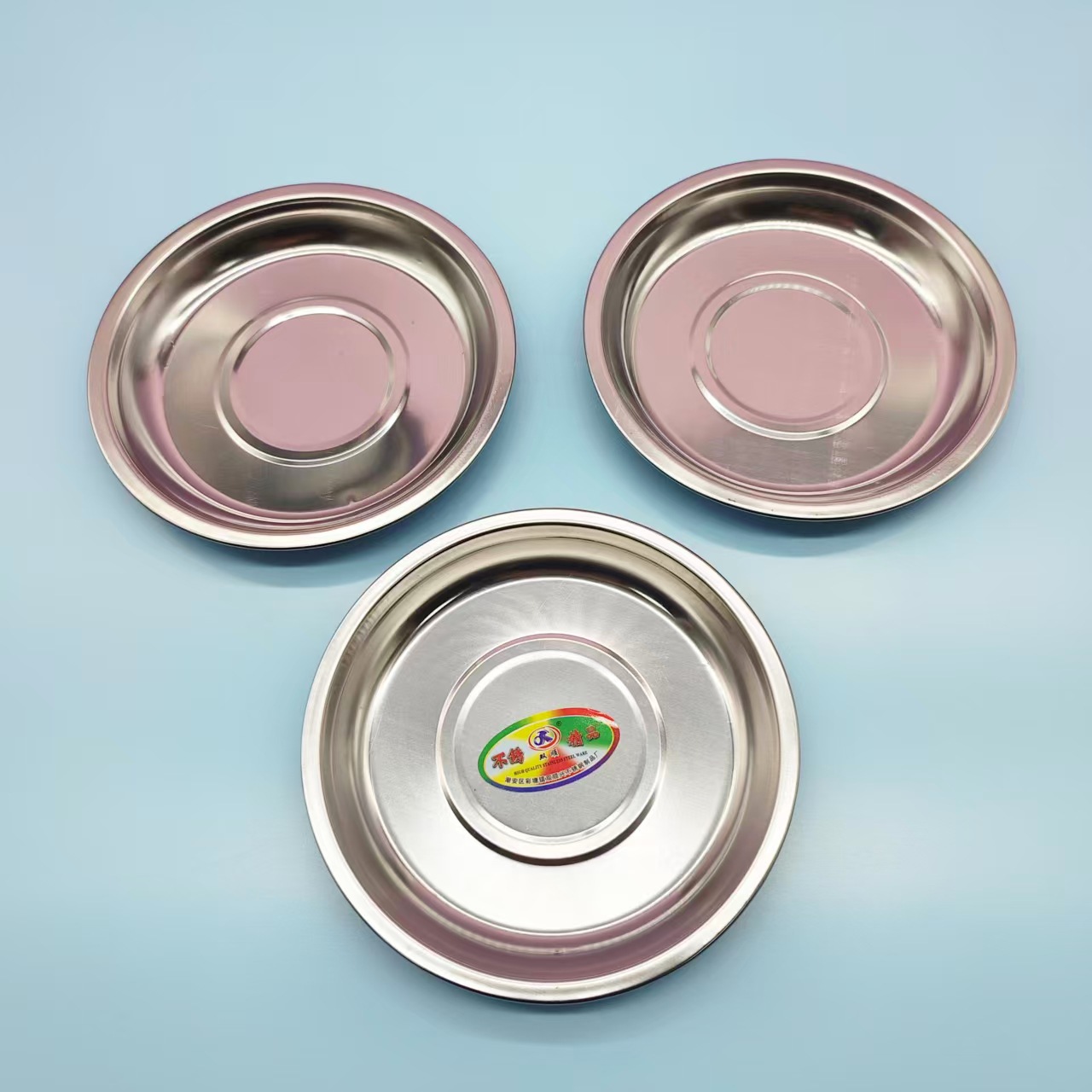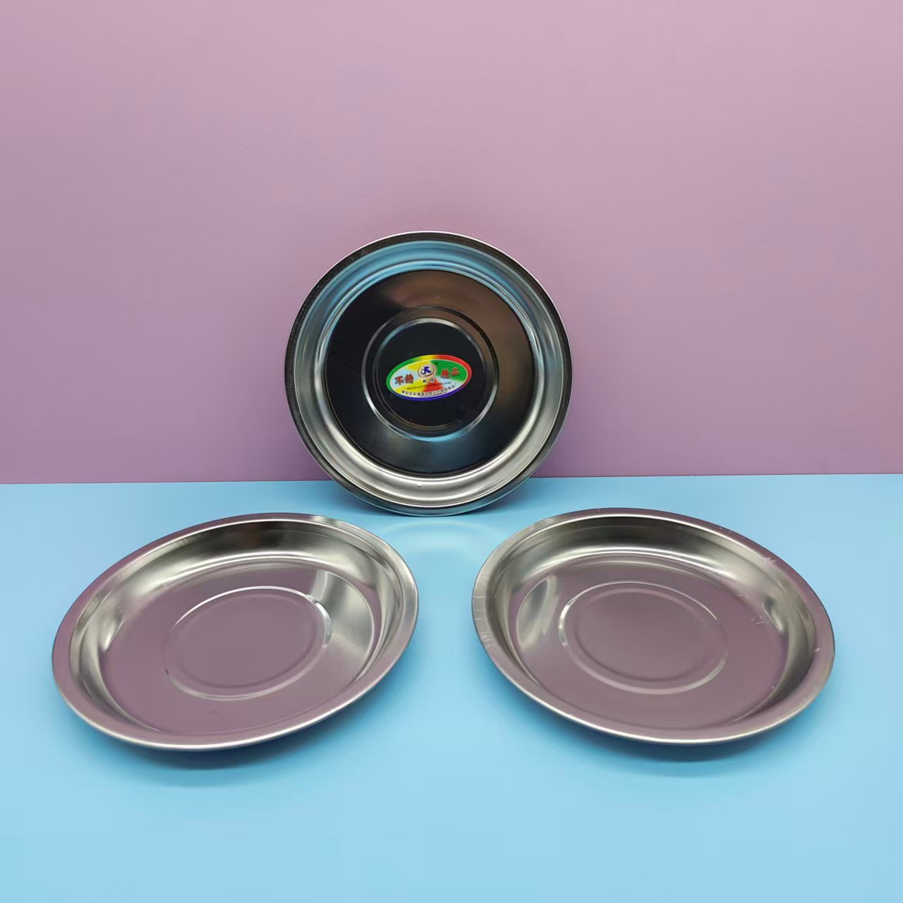 16 스테인레스 스틸 원형 접시 접시 두꺼운 과일 접시 주방 용품 1 달러 2 달러 도매스토어 가기