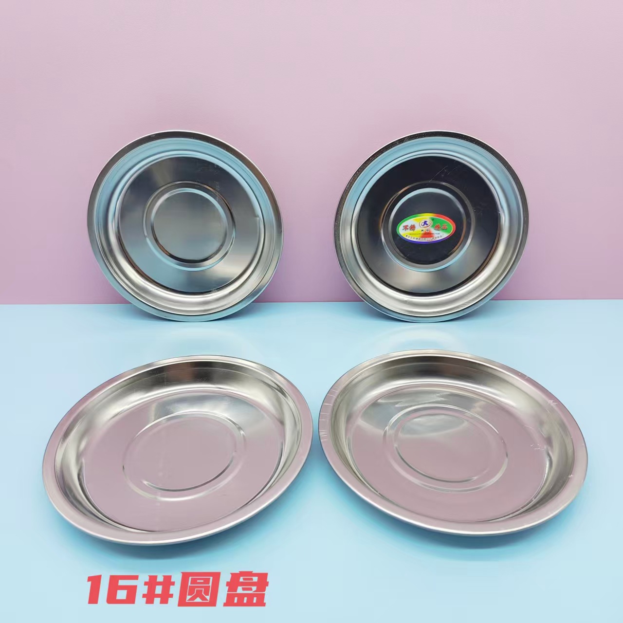 16 스테인레스 스틸 원형 접시 접시 두꺼운 과일 접시 주방 용품 1 달러 2 달러 도매