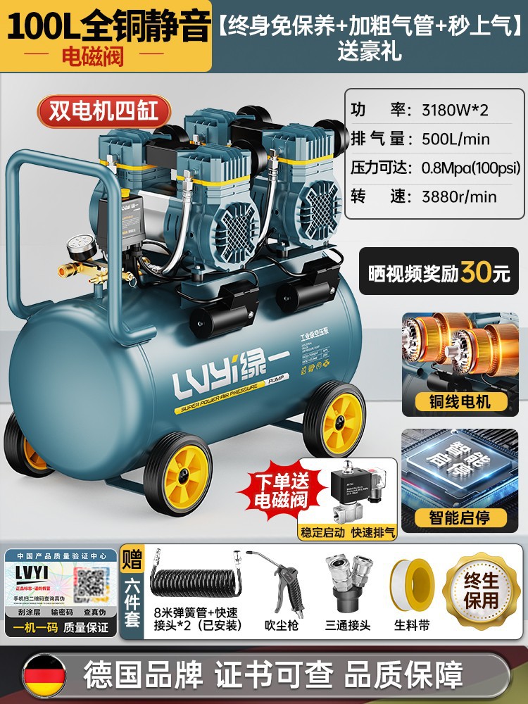 • 브러시리스 인텔리전스/초 단위 공기 흡입/안전 방폭-65L-3180W*2 [이중 솔레노이드 밸브 + 지능형 시작 및 정지] 4기통