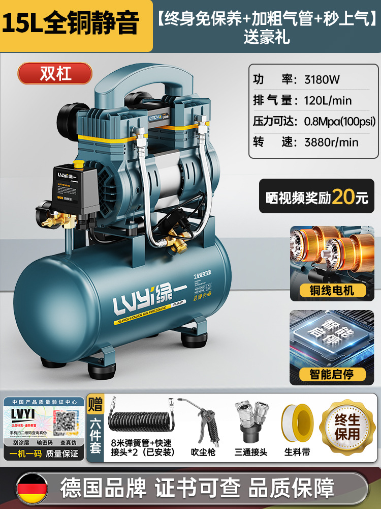 • 브러시리스 인텔리전스/초당 공기 공급/안전 방폭-15L-3180W [이중 솔레노이드 밸브 + 지능형 시작 및 정지] 럭셔리 모델