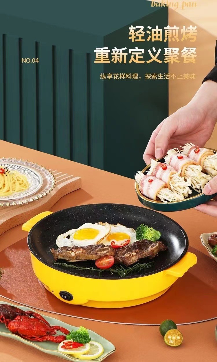 다기능 붙지 않는 전기 그릴 팬, 전기 프라이팬, 한국식 가정용 바베큐 일체형 소형 기숙사 프라이팬, 빠른 구이