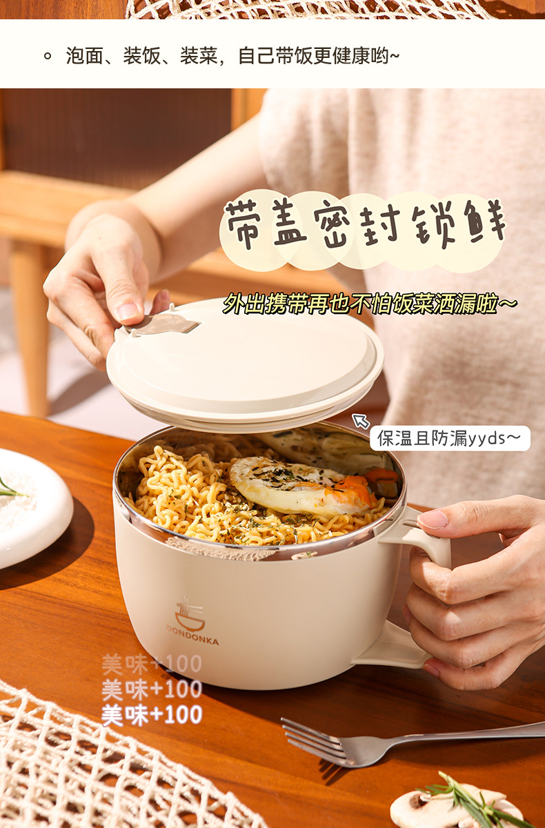 뚜껑과 배수구가 있는 기숙사생을 위한 신제품 라면그릇, 일본식 라면, 스테인리스 수통, 라면그릇스토어 가기