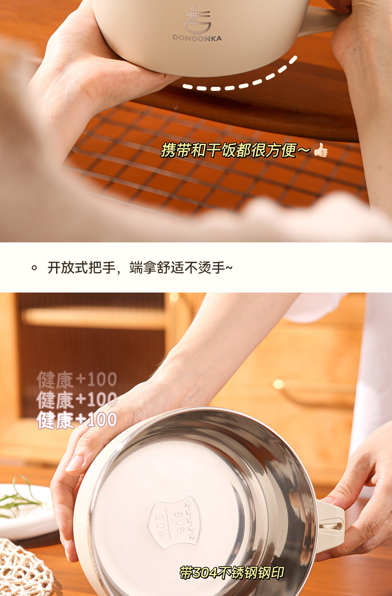 뚜껑과 배수구가 있는 기숙사생을 위한 신제품 라면그릇, 일본식 라면, 스테인리스 수통, 라면그릇
