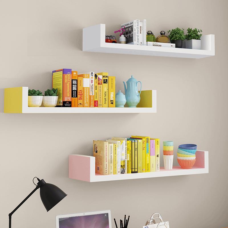 U자형 책장, 벽걸이형 벽걸이형 거실 장식 선반, 침실 벽 칸막이, 나무 판자스토어 가기