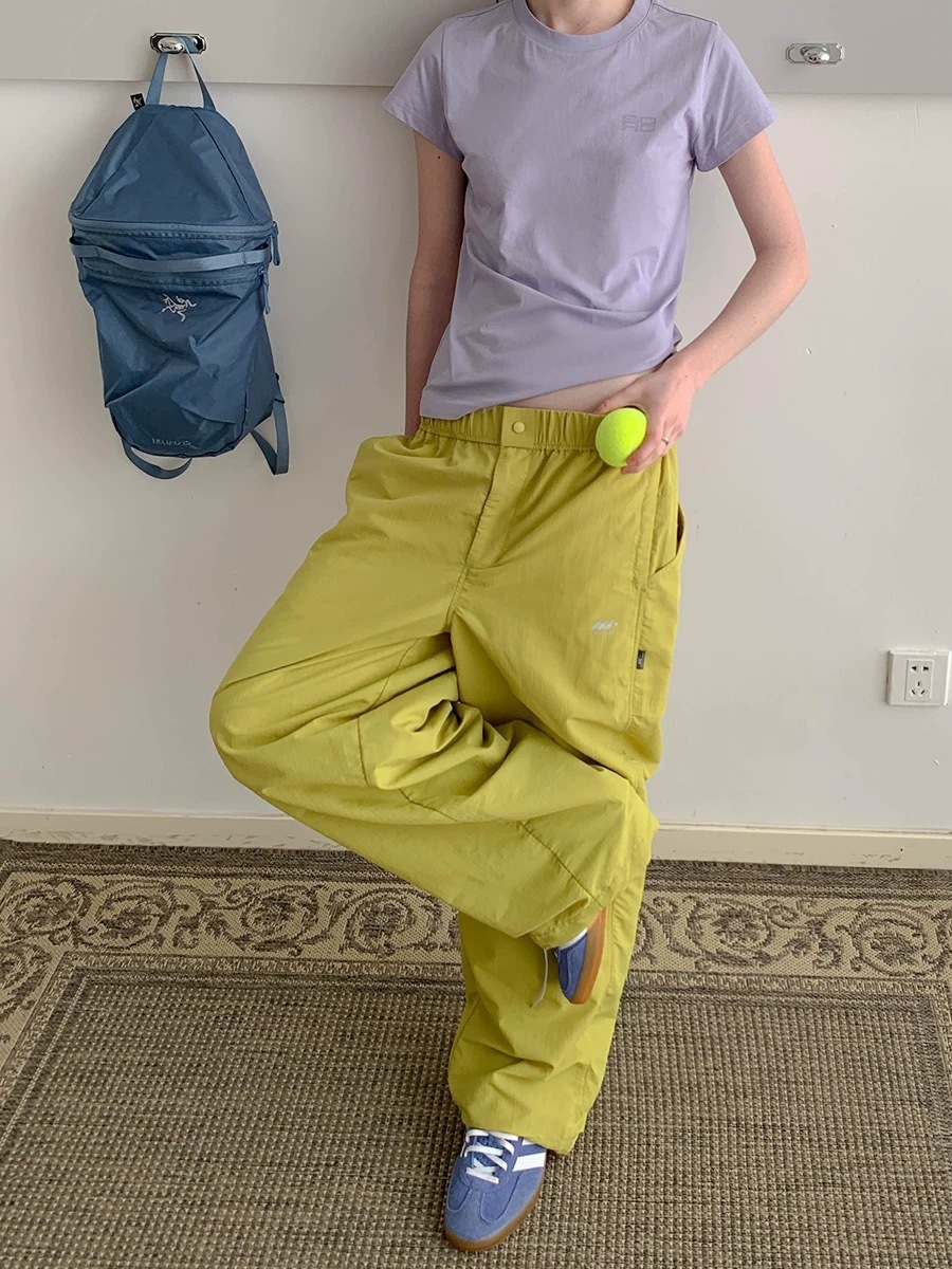 25 새로운 야외 레저 등산 하이킹 경량 방수 느슨한 넓은 다리 낙하산 바지 바지 여성스토어 가기