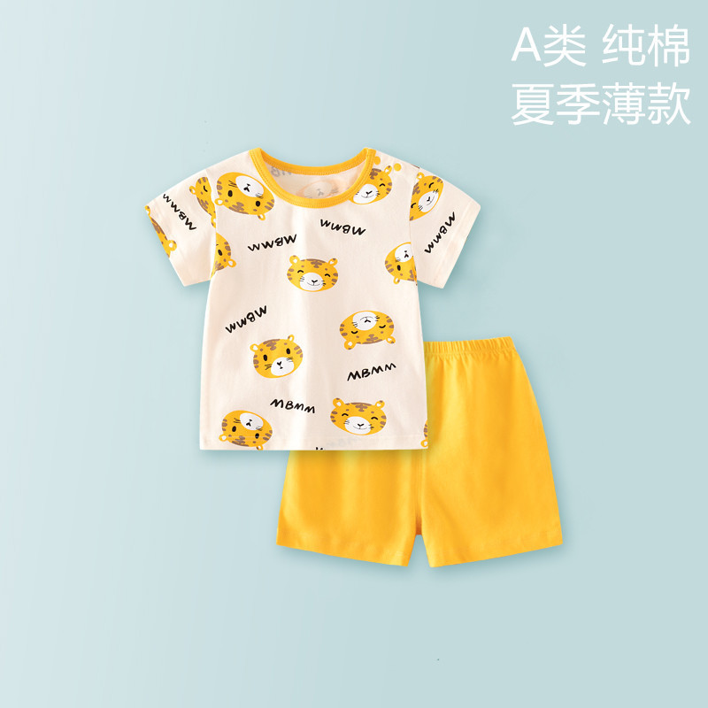 아동복 반팔 스플릿 여름 아기 여름 옷 소년 아기 순면 소녀 반바지 잠옷 가정 의류 얇은