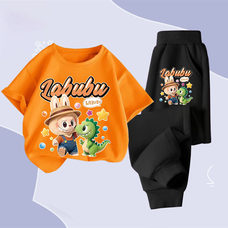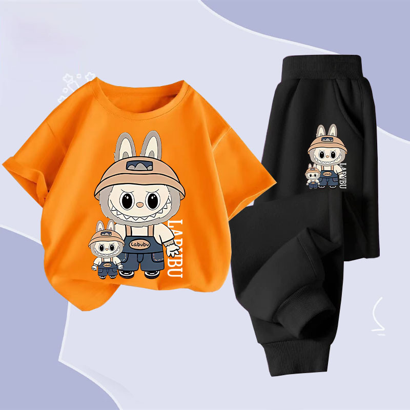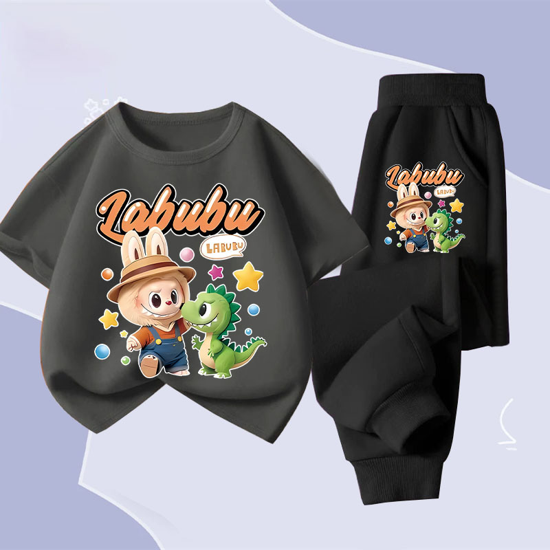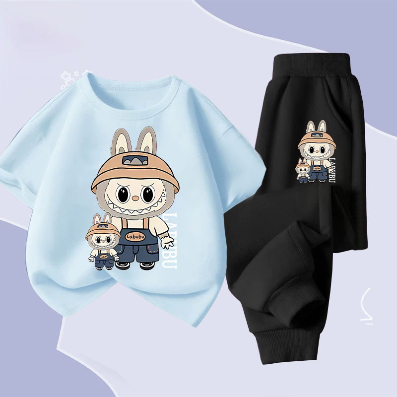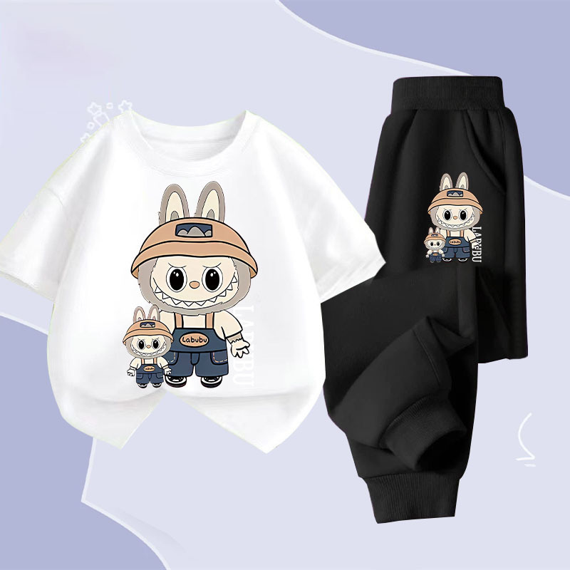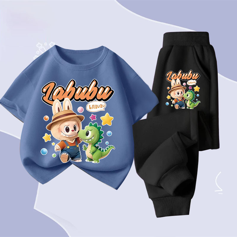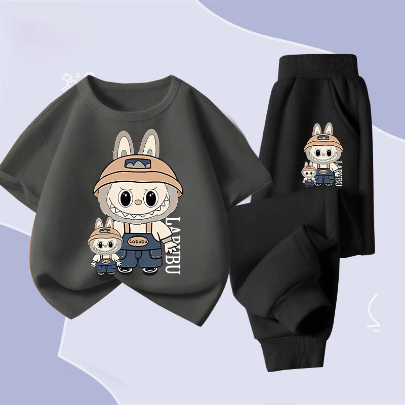 소년 정장 2025 새로운 유행 여름 캐주얼 반팔 티셔츠 아동복 소년 멋진 루즈 투피스 세트