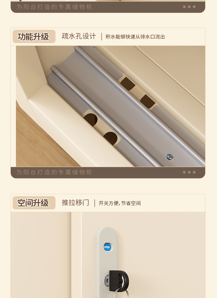 야외 발코니 캐비닛 태양 보호 보관 캐비닛 슬라이딩 도어 옷장 방수 태양 보호 야외 보관 대용량 잠금 장치