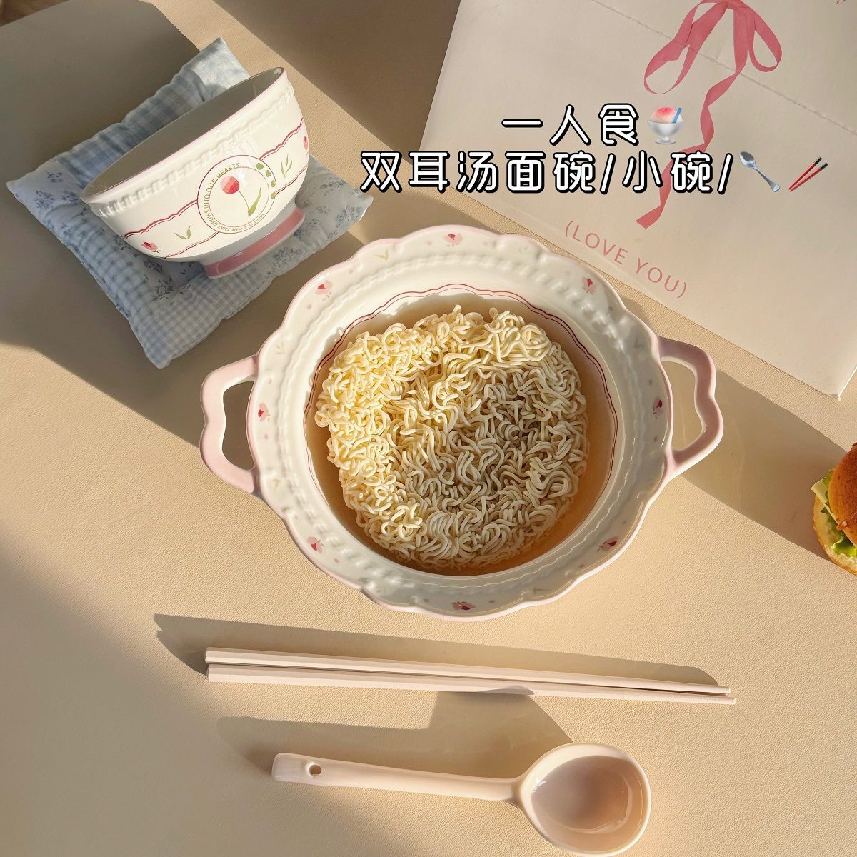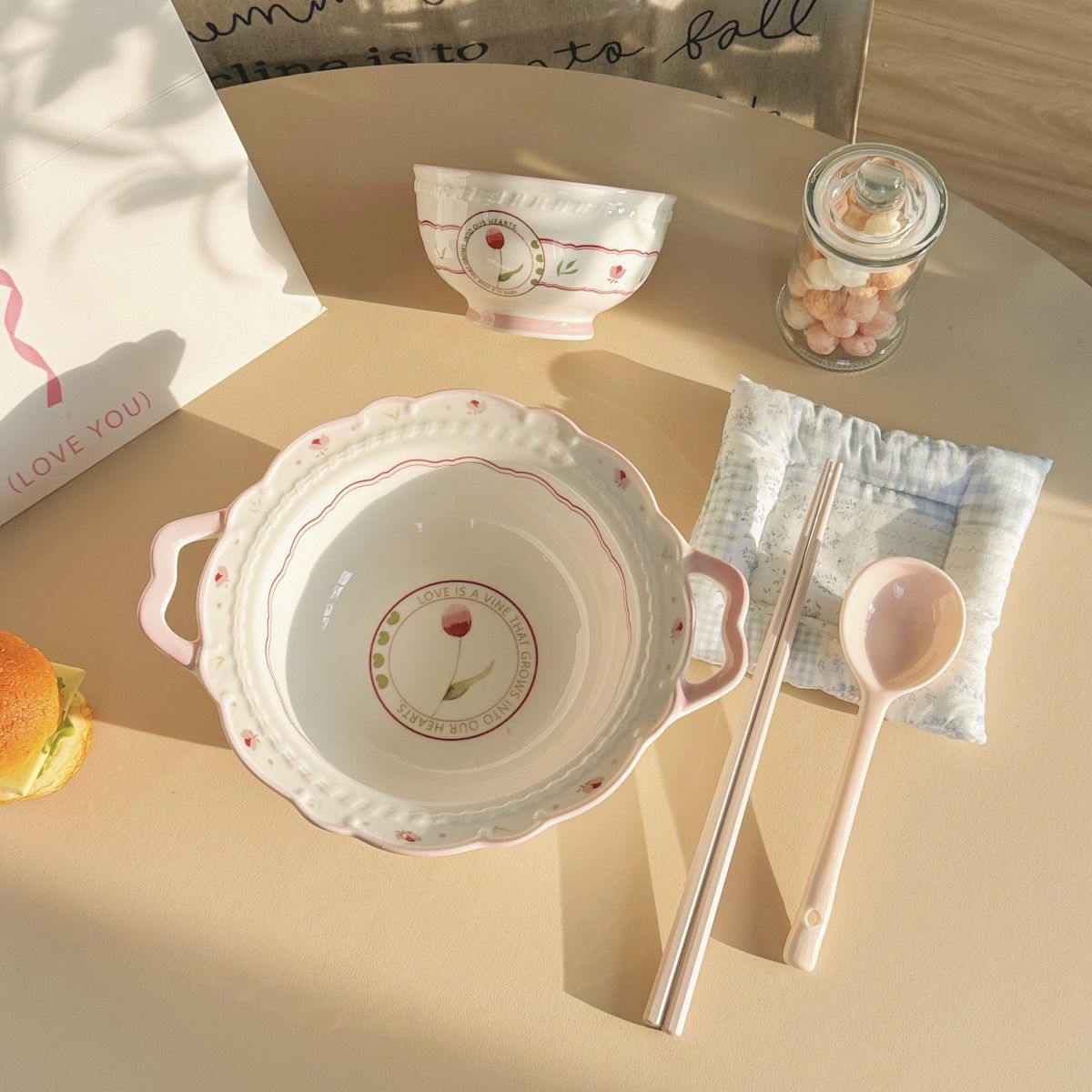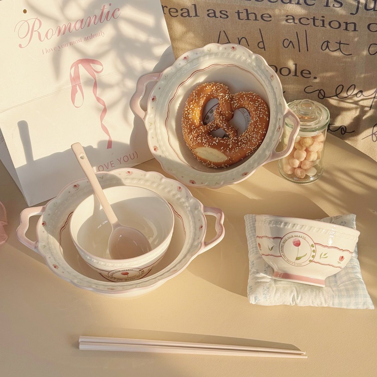 [1인분] 소녀들을 위한 세라믹 그릇과 접시, 고급스러운 밥그릇, 귀여운 접시, 심플한 식기, 언더글레이즈