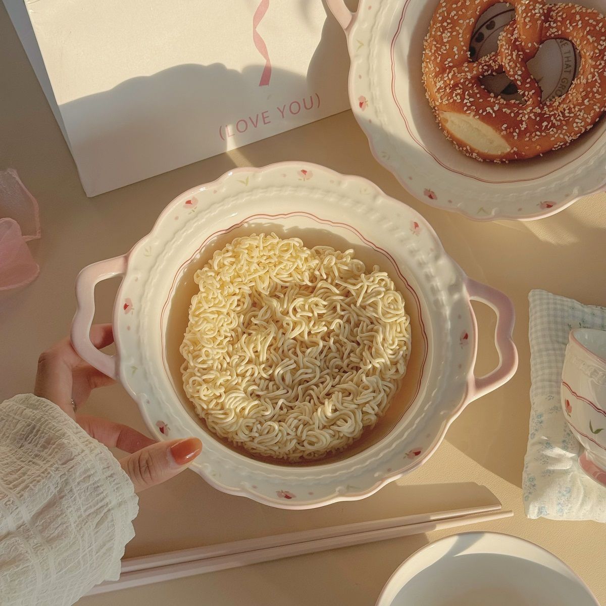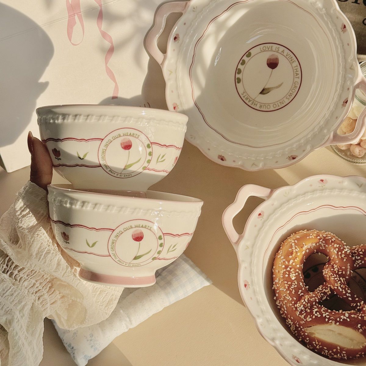 [1인분] 소녀들을 위한 세라믹 그릇과 접시, 고급스러운 밥그릇, 귀여운 접시, 심플한 식기, 언더글레이즈스토어 가기