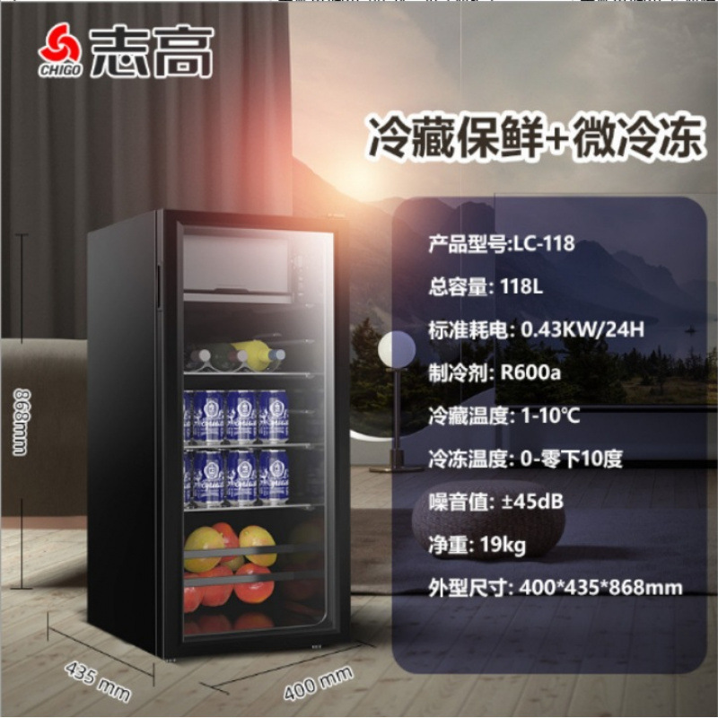 Chigo 디스플레이 냉장고 아이스 바 홈 신선 유지 시가 레드 와인 음료 냉장고 투명 도어 호텔 소형 냉장고스토어 가기