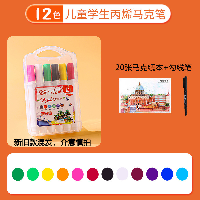 • 12가지 색상 무료 페인팅 풀 세트 9종 선물 - 아크릴 마커 - 환경 친화적, 무독성, 색상 중첩 및 내광성