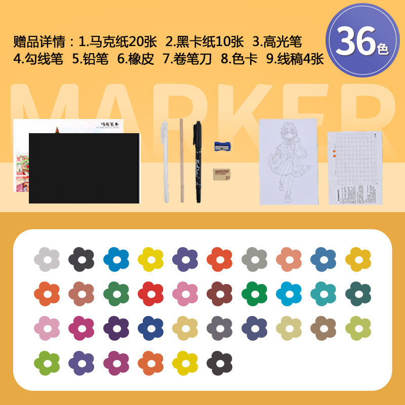 • 36가지 색상 무료 페인팅 9종 선물 세트 - 아크릴 마커 - 환경 친화적, 무독성, 색상 중첩 및 내광성