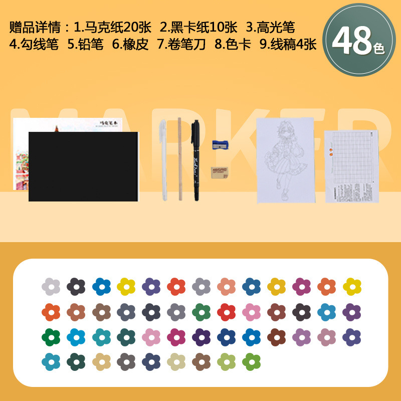 • 48가지 색상에는 마크지 20장 + 아웃라인 펜 - 아크릴 마커 - 환경 친화적, 무독성, 색상 중첩 및 내광성