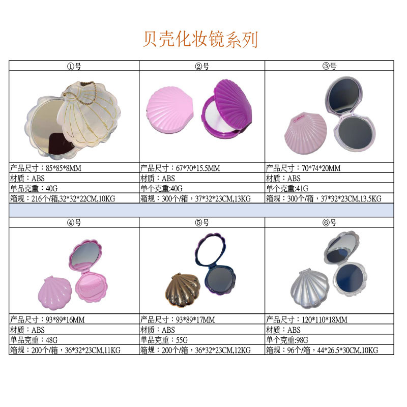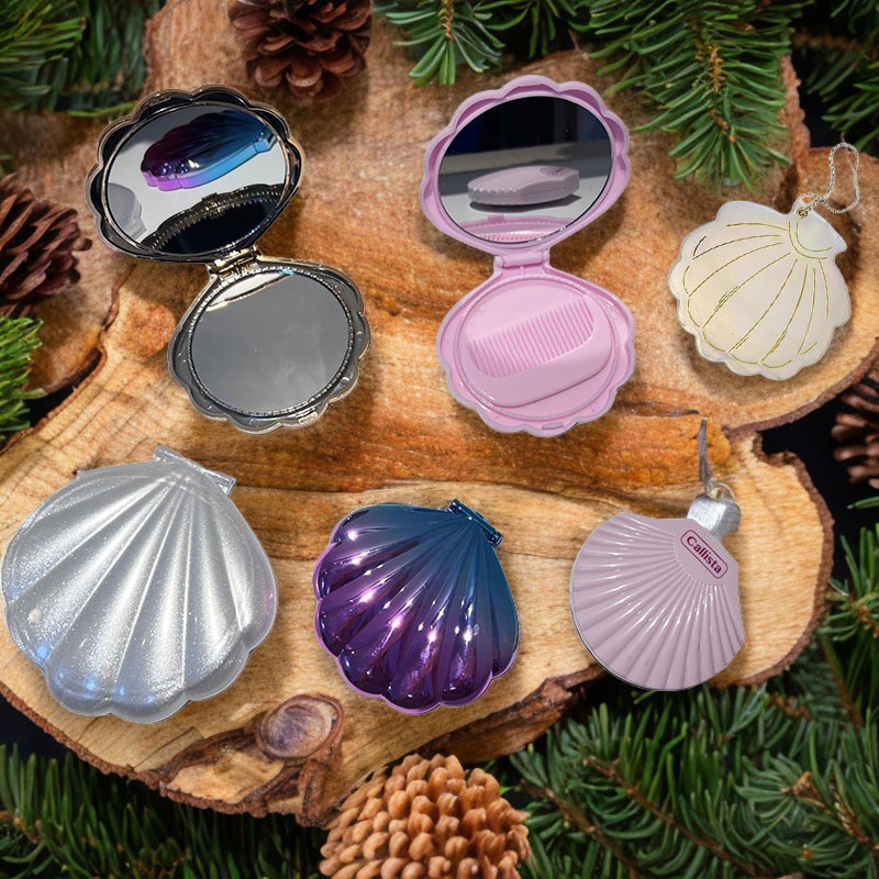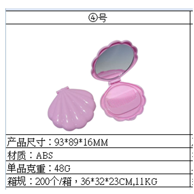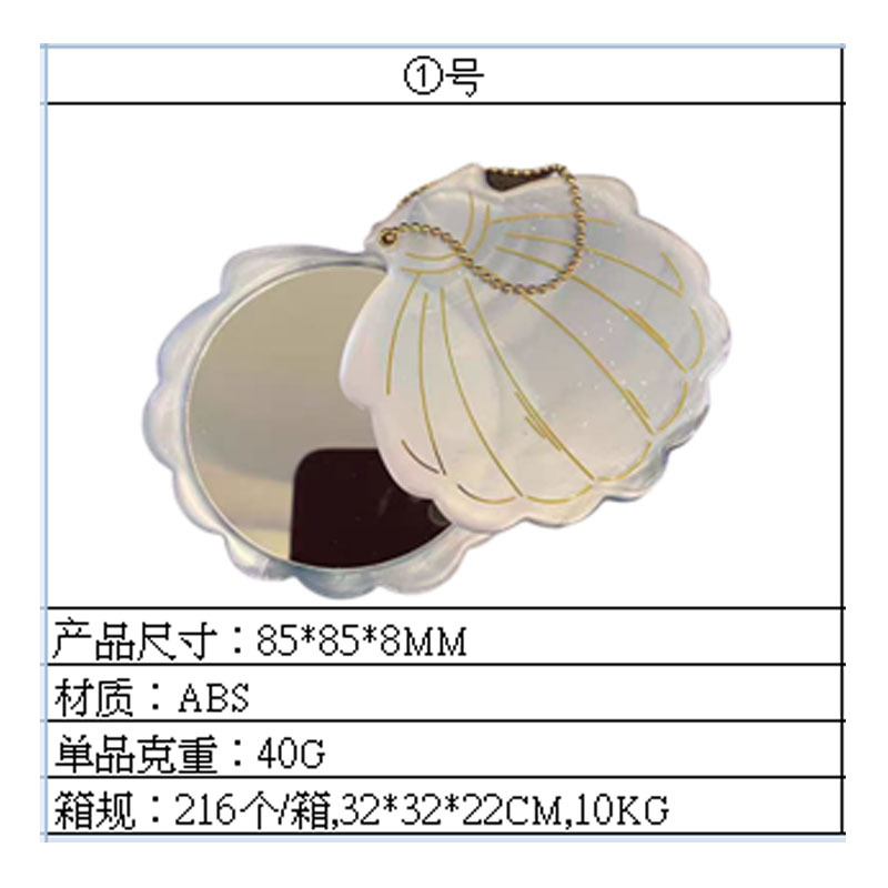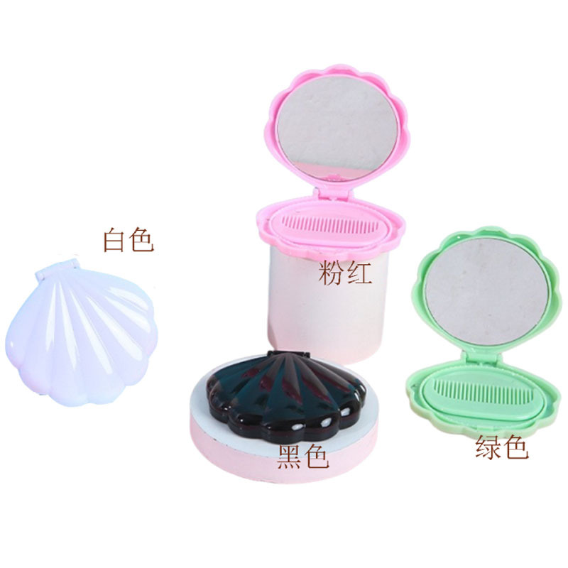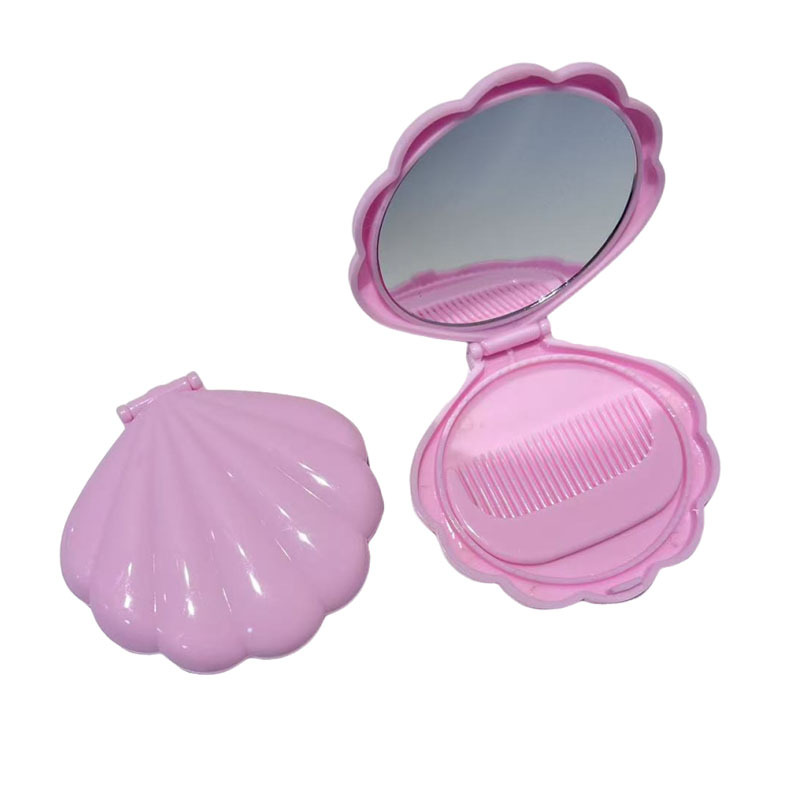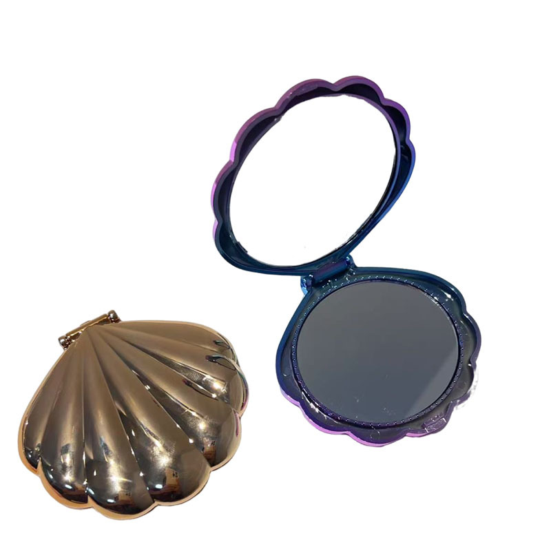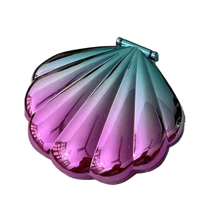 유리 바다 조개 거울 부채꼴 진주 조개 양면 거울 크리 에이 티브 빗 거울 세트 컬러 도금 인어 접는 거울