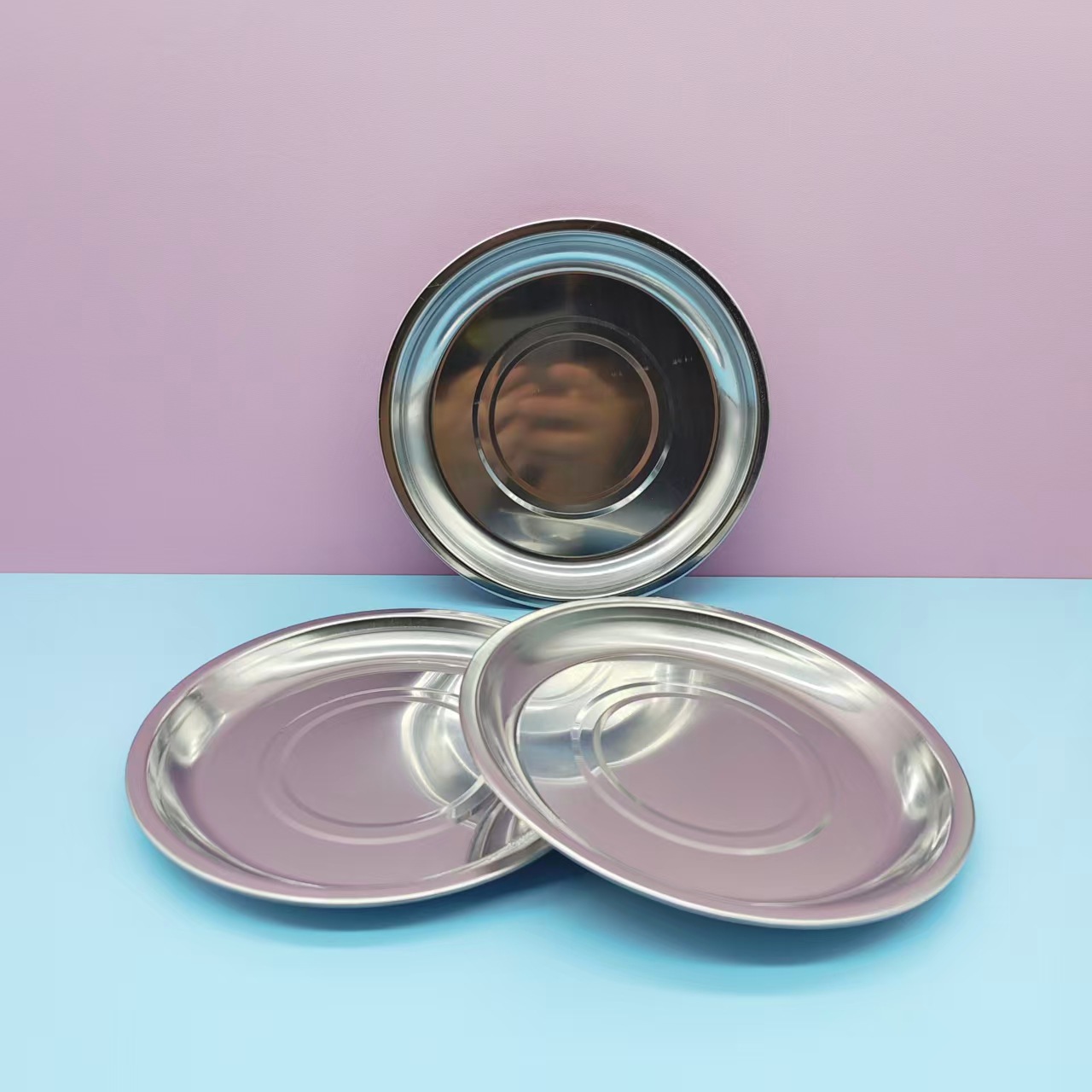 스테인레스 스틸 원형 접시, 두꺼운 과일 접시, 스테인레스 스틸 원형 접시, 가정용 원형 접시, 1 위안 및 2 위안 도매