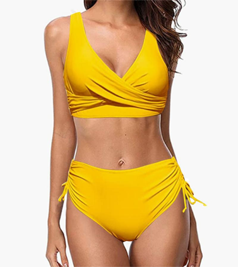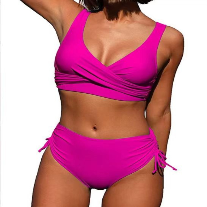 수영복 스플릿 비키니 솔리드 컬러 크로스 스트랩 아마존 핫 스타일 하이 웨이스트 수영복 유럽과 미국의 대외 무역 섹시한 비키니스토어 가기