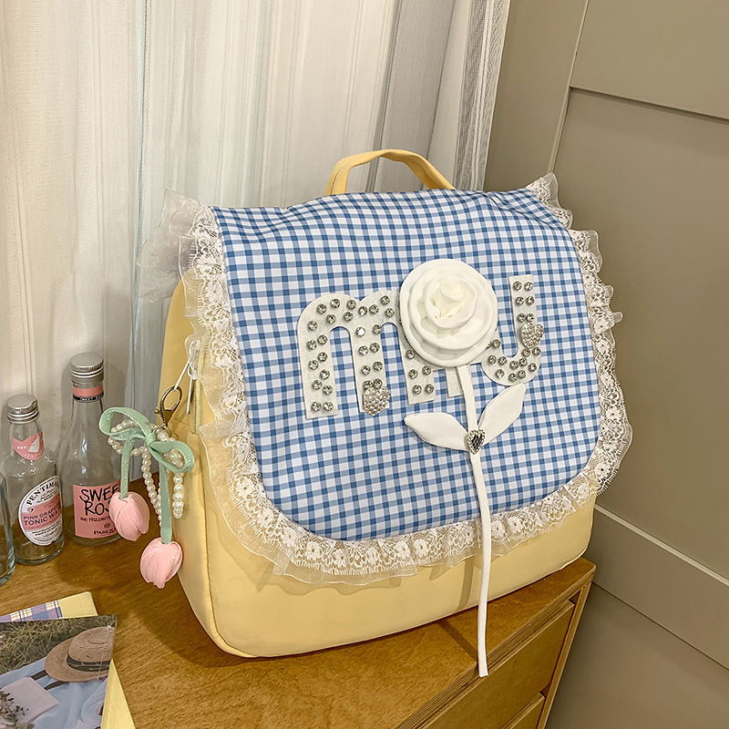 귀여운 만화 소녀 작은 배낭 학생 가방 격자 무늬 배낭 레이스 장식 여름 도파민 여성 핸드백스토어 가기