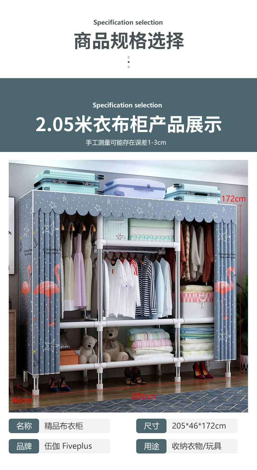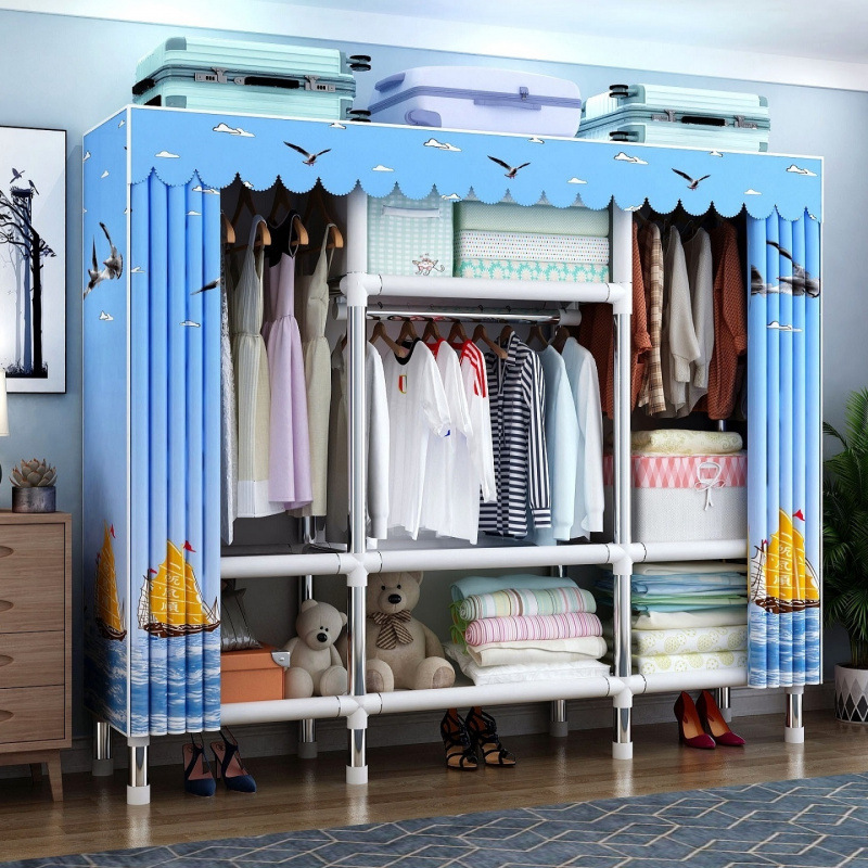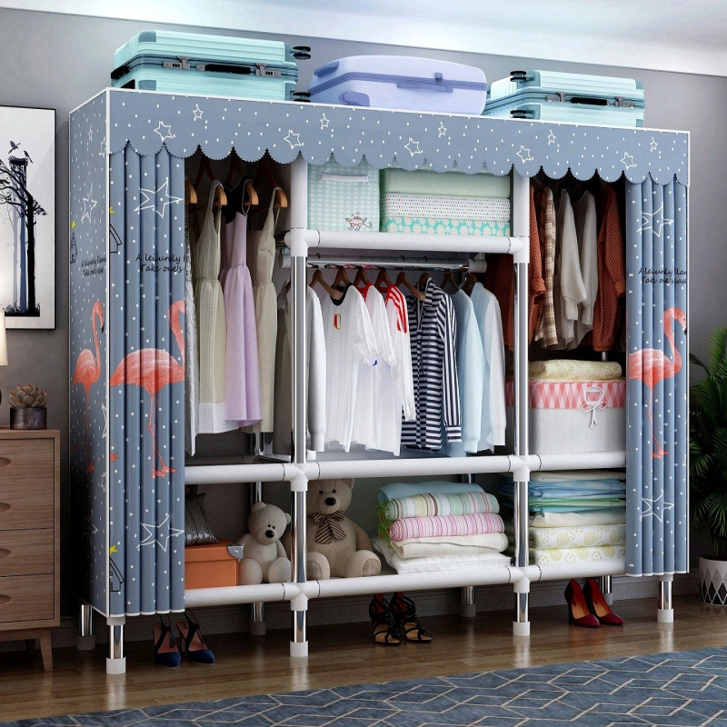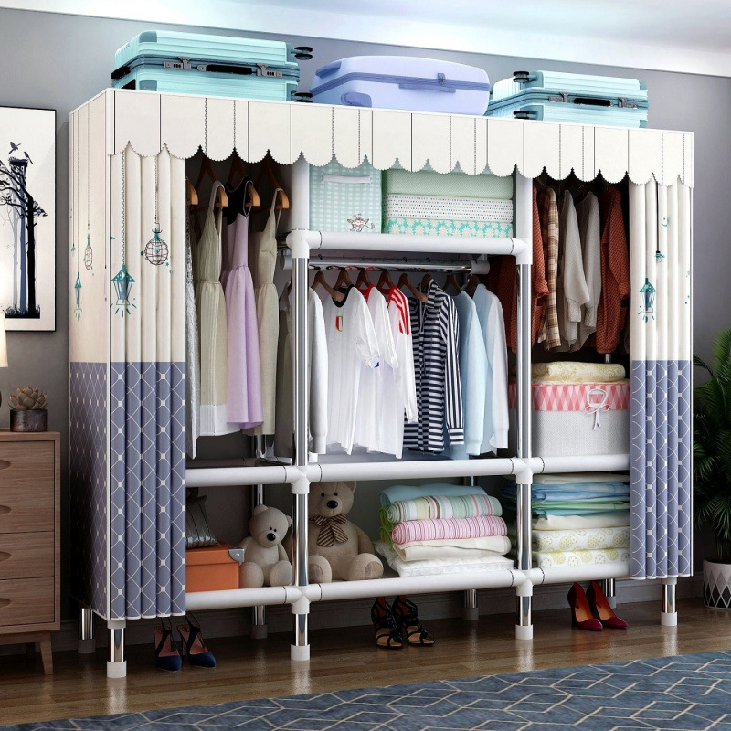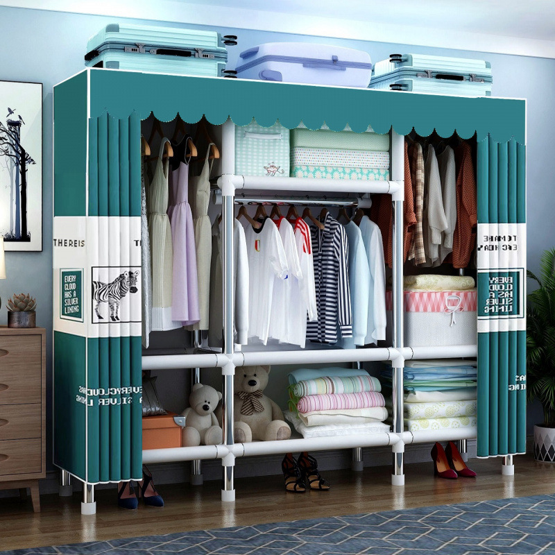 옷장 천 옷장 강철 파이프 두꺼운 강화 캐비닛 간단한 옷장 가정용 조립 옷장 임대실 수납 선반