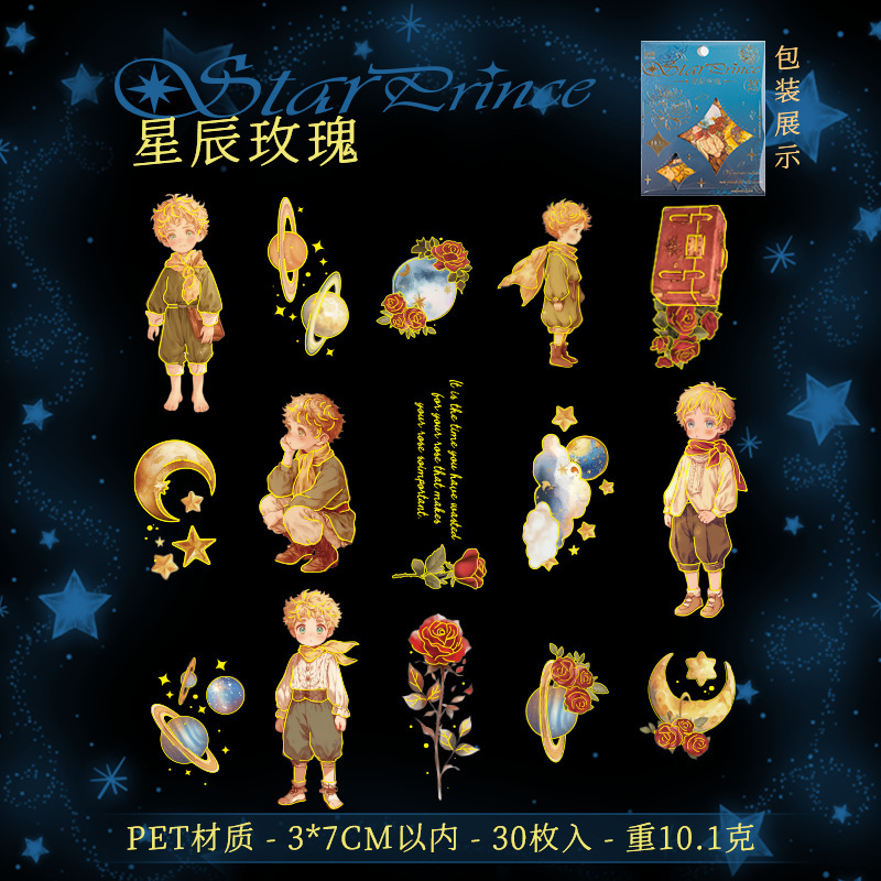 Yuxian 애완 동물 핫 스탬핑 스티커 팩 스타 트래블러 시리즈 프린스 소재 DIY 엽서 핸드북 장식 스티커