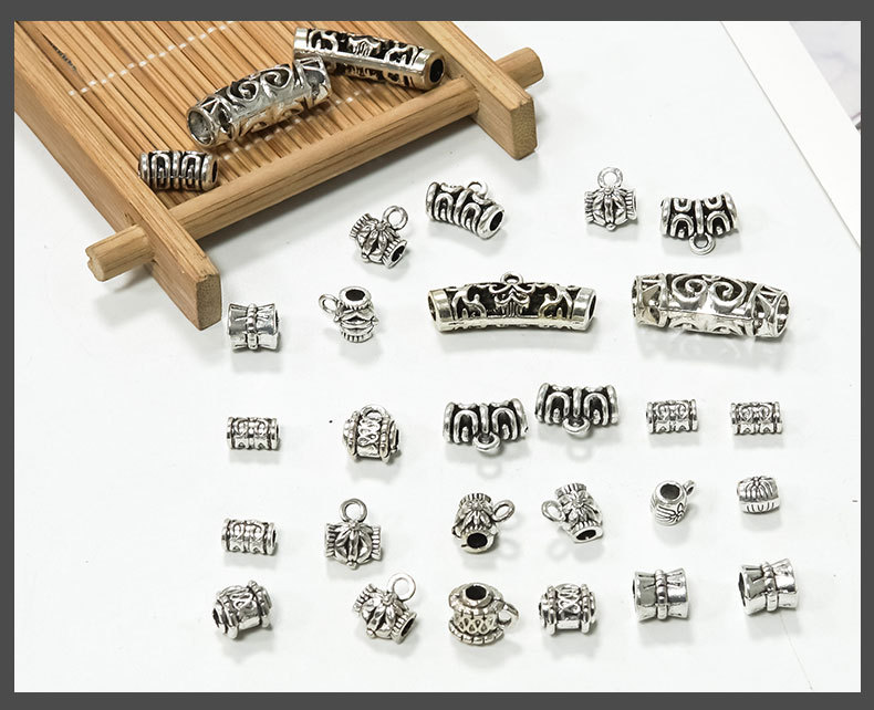 3방향 티베트 실버 펜던트 곡선 튜브 복고풍 오래된 아연 합금 액세서리 DIY 수제 페르시 땋은 팔찌 소재