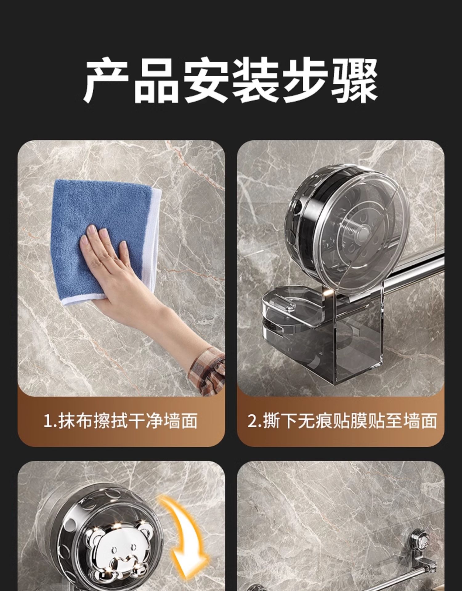 흡착판, 접이식 수건걸이, 회전식, 펀치 없는 욕실 수건, 욕실 후크, 수납선반, 수납걸이