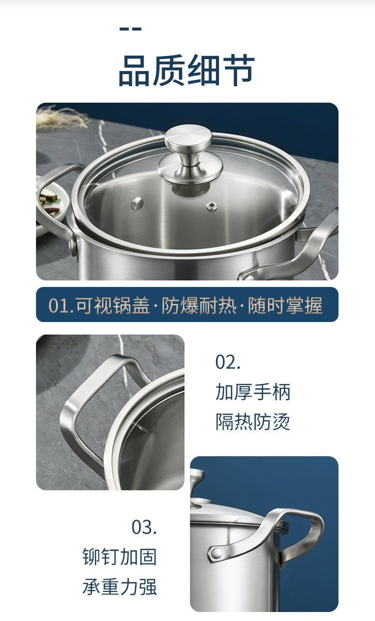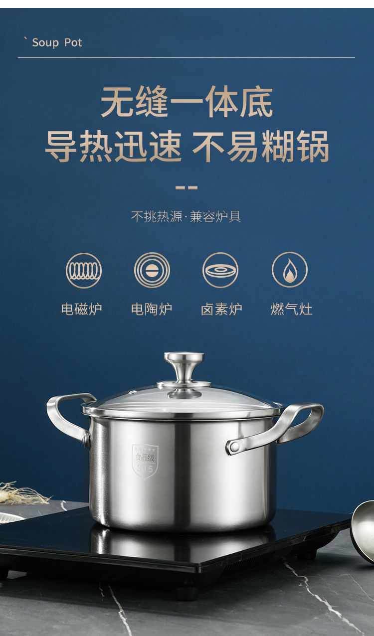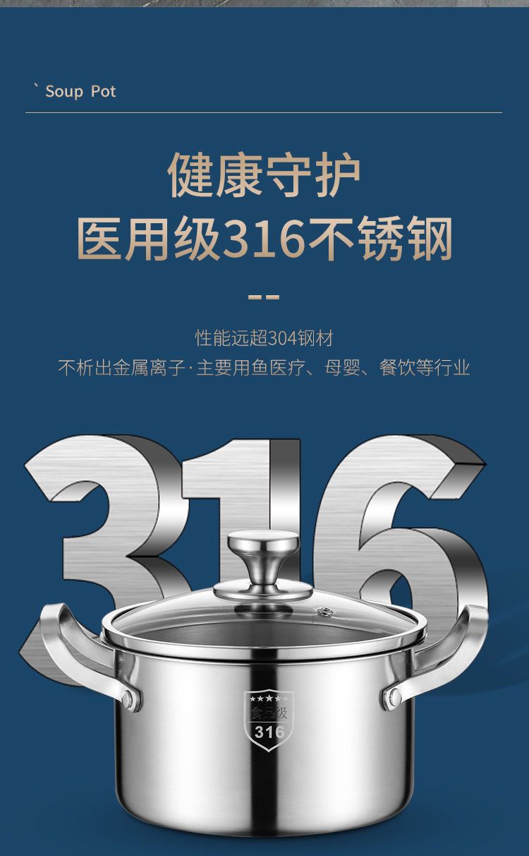 316 스테인레스 스틸 수프 냄비 가정용 두꺼운 일체형 붙지 않는 냄비 국수 및 죽 요리 용 소형 스튜 냄비 가스 전자기 Ruizhiyin