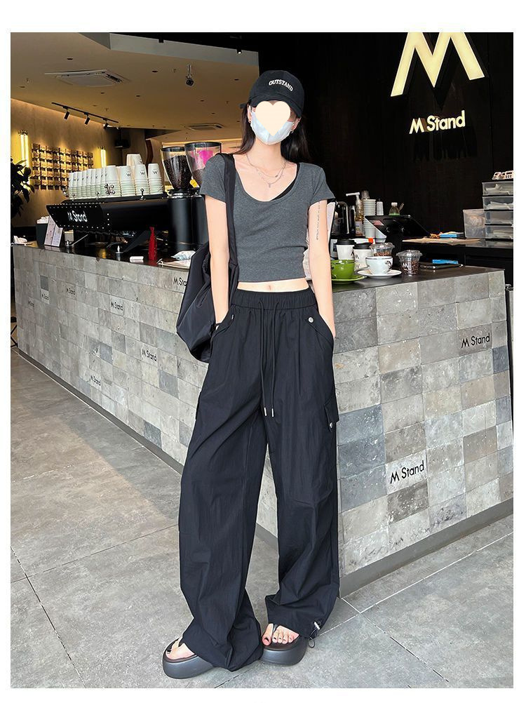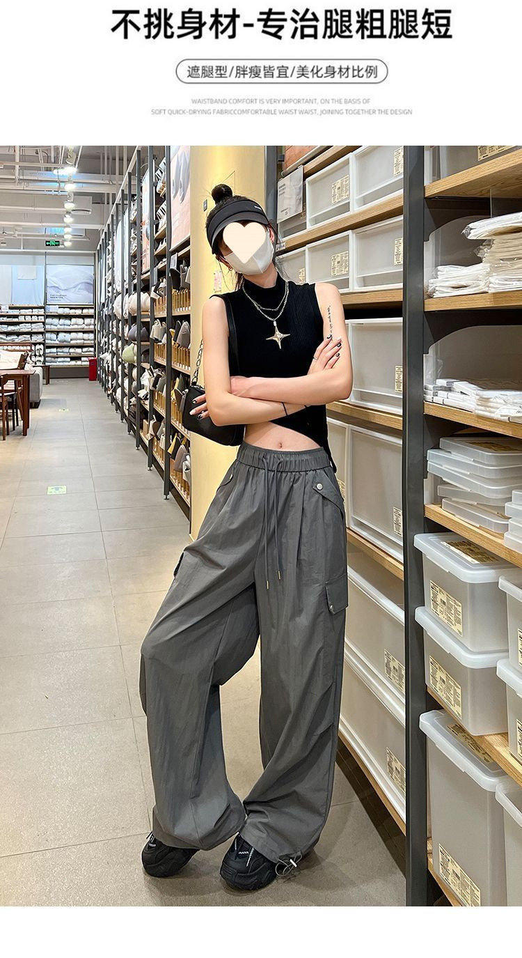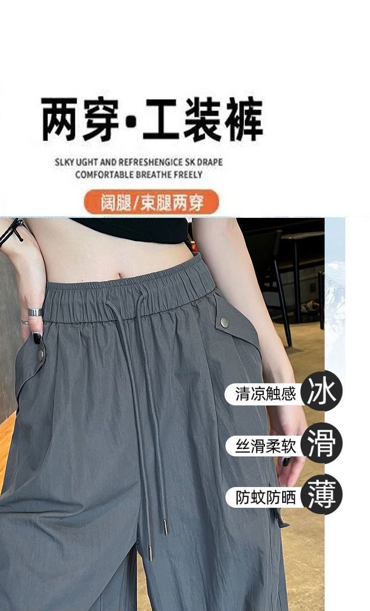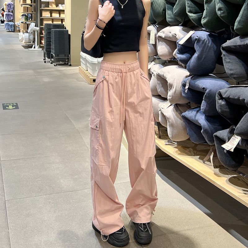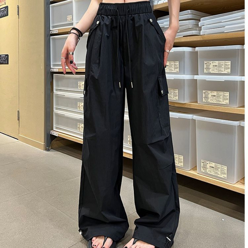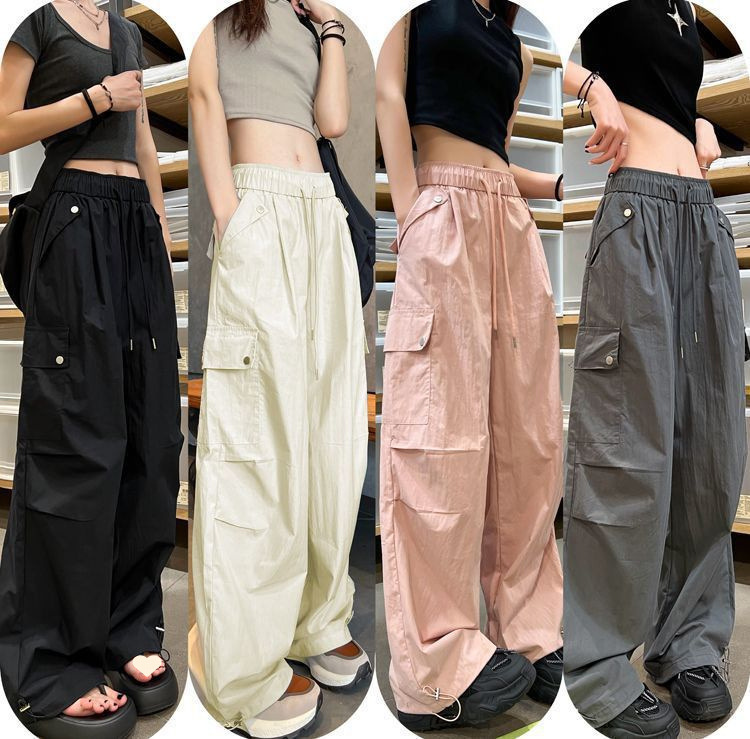 가을 겨울 여성을 위한 얇은/벨벳 아메리칸 파라슈트 작업복 새로운 하이웨이스트 루즈 속건성 등산 스포츠 와이드 팬츠