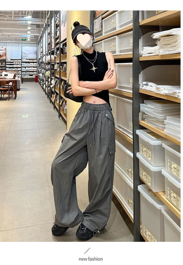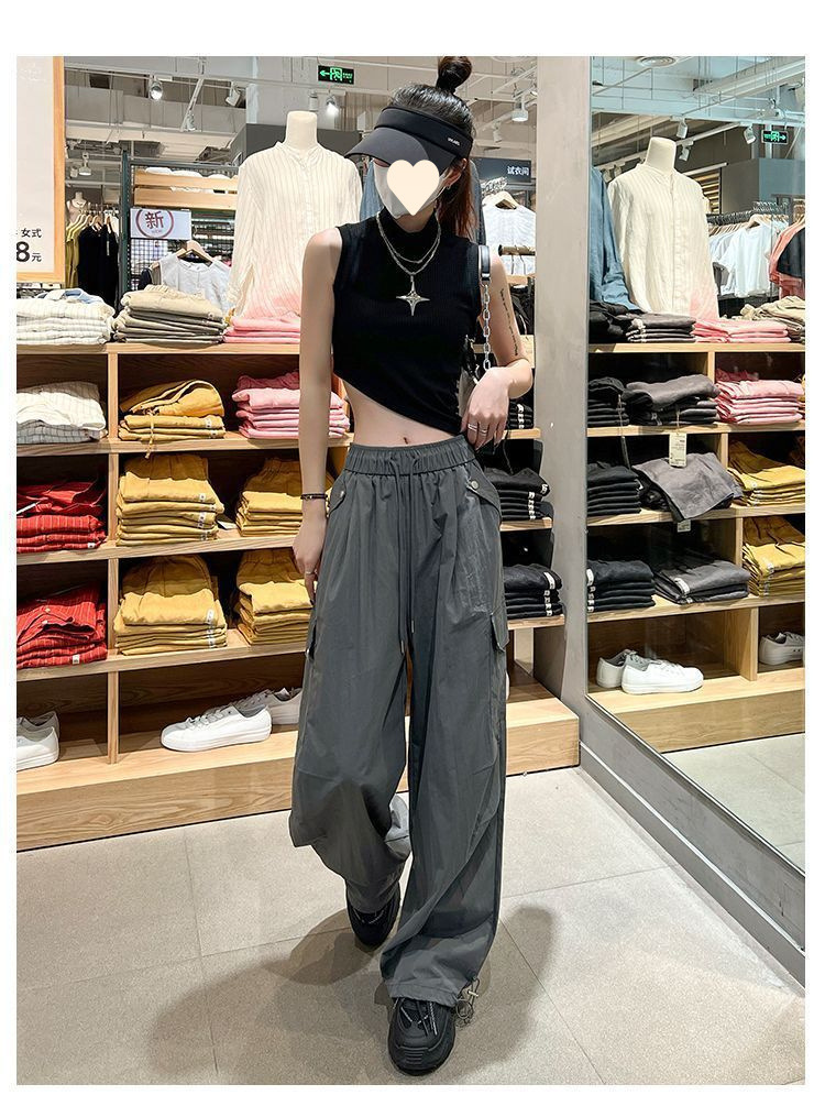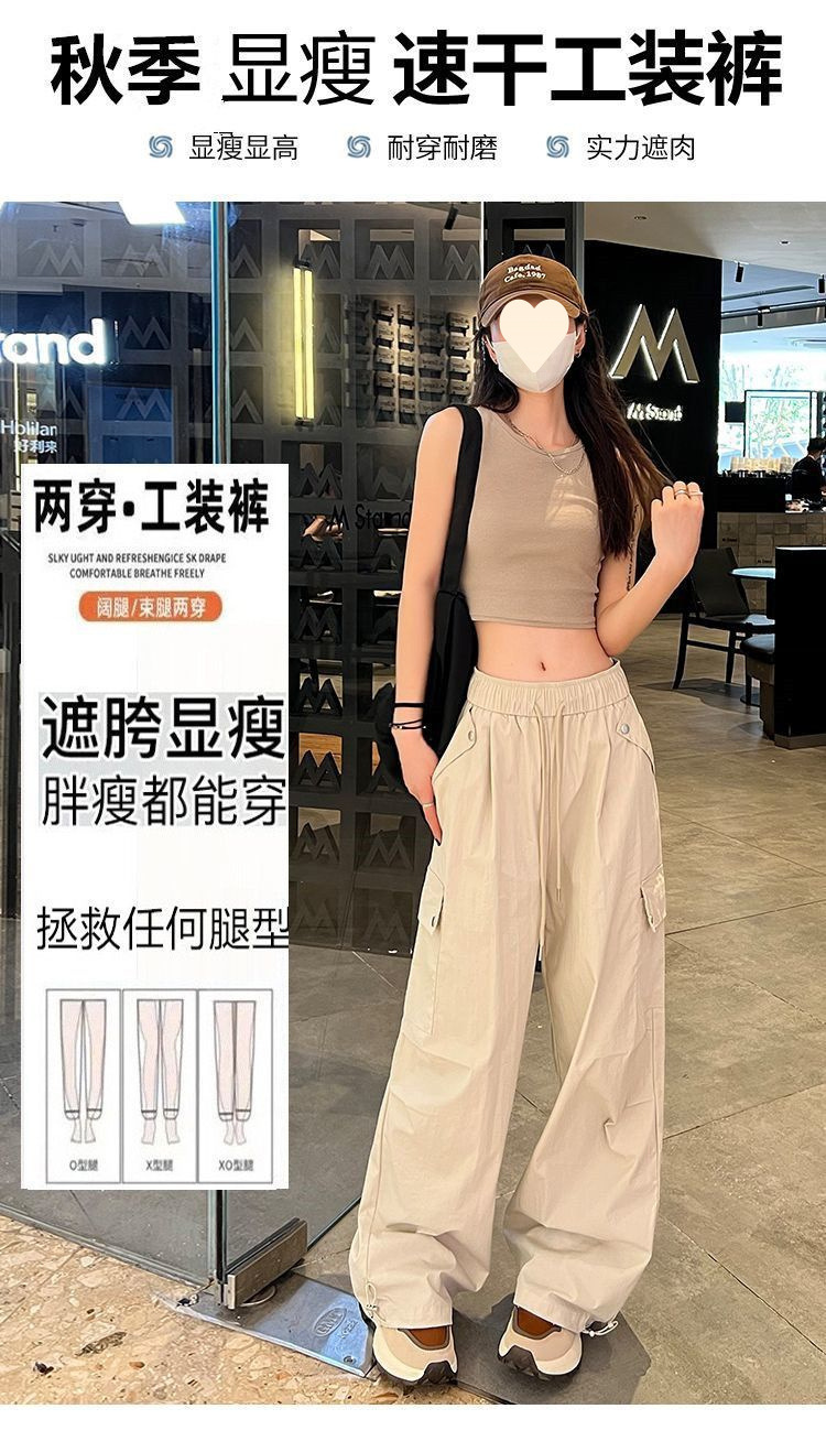 가을 겨울 여성을 위한 얇은/벨벳 아메리칸 파라슈트 작업복 새로운 하이웨이스트 루즈 속건성 등산 스포츠 와이드 팬츠스토어 가기