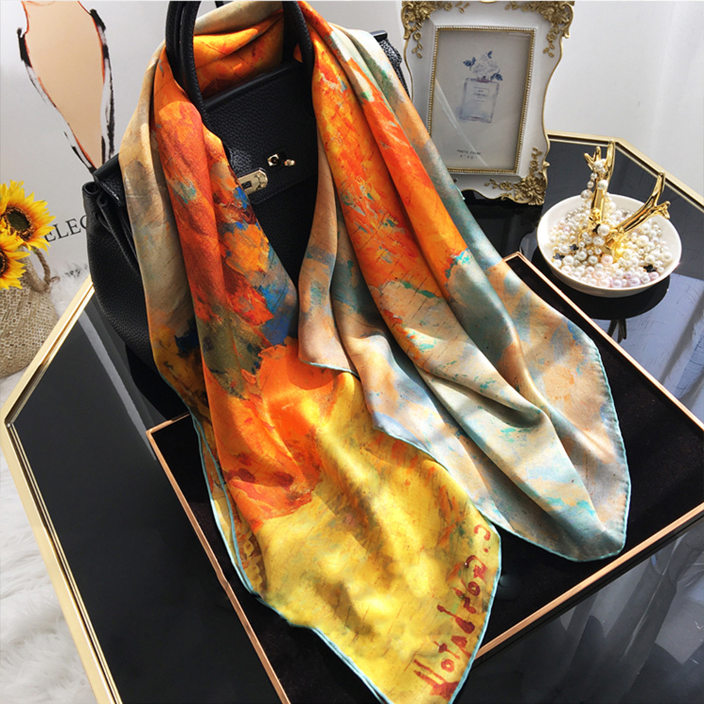 2025 봄 새로운 모조 실크 110cm 대형 사각형 스카프 목도리 태양 보호 실크 스카프 새틴 스카프 여성 선물 하이 엔드