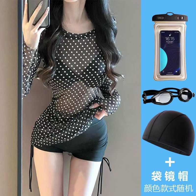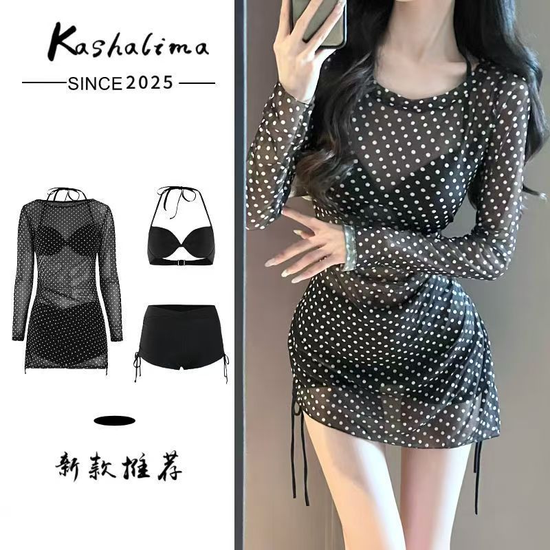 비키니 수영복 여성 2025 새로운 블랙 하이 엔드 섹시한 순수한 욕망 슬리밍 긴팔 블라우스 해변 휴가 수영복스토어 가기