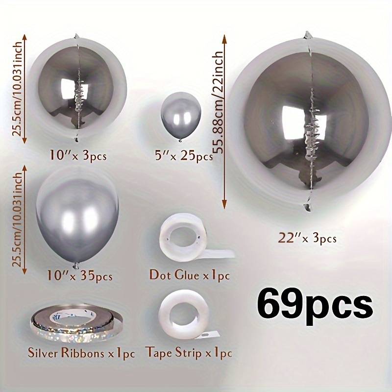 • 69피스 실버 4D 볼 풍선 세트