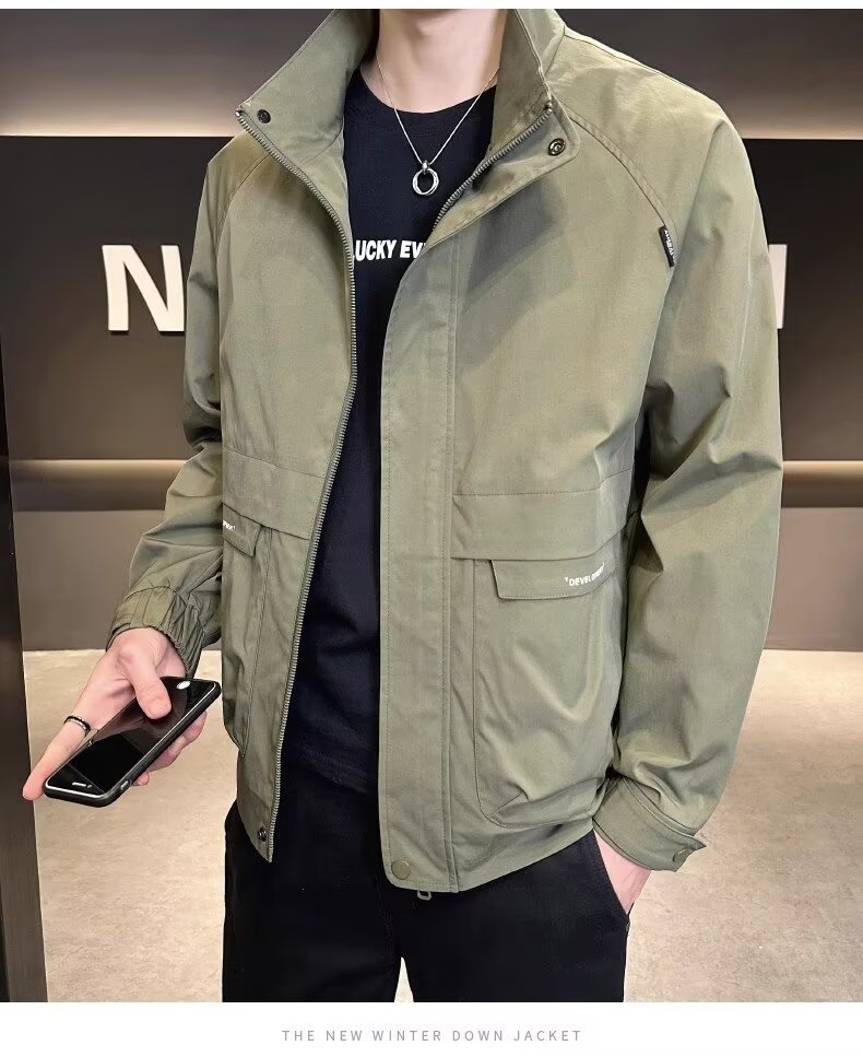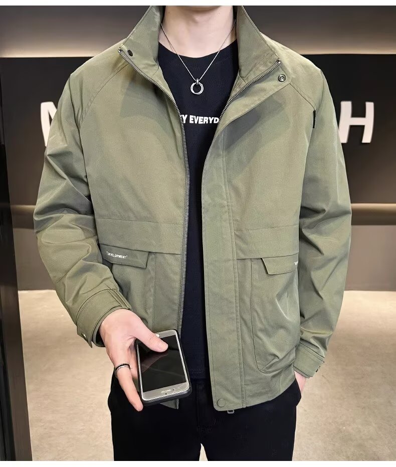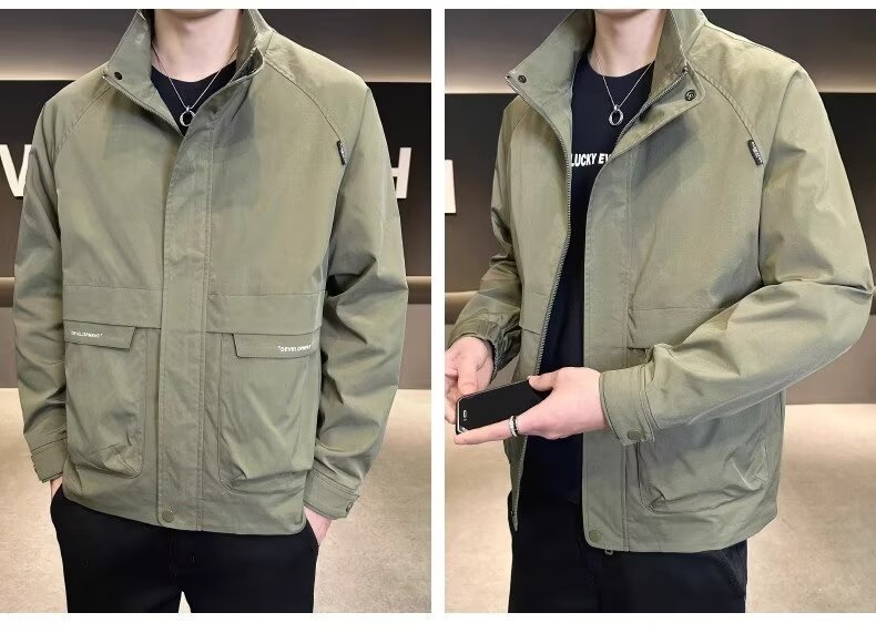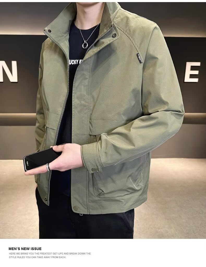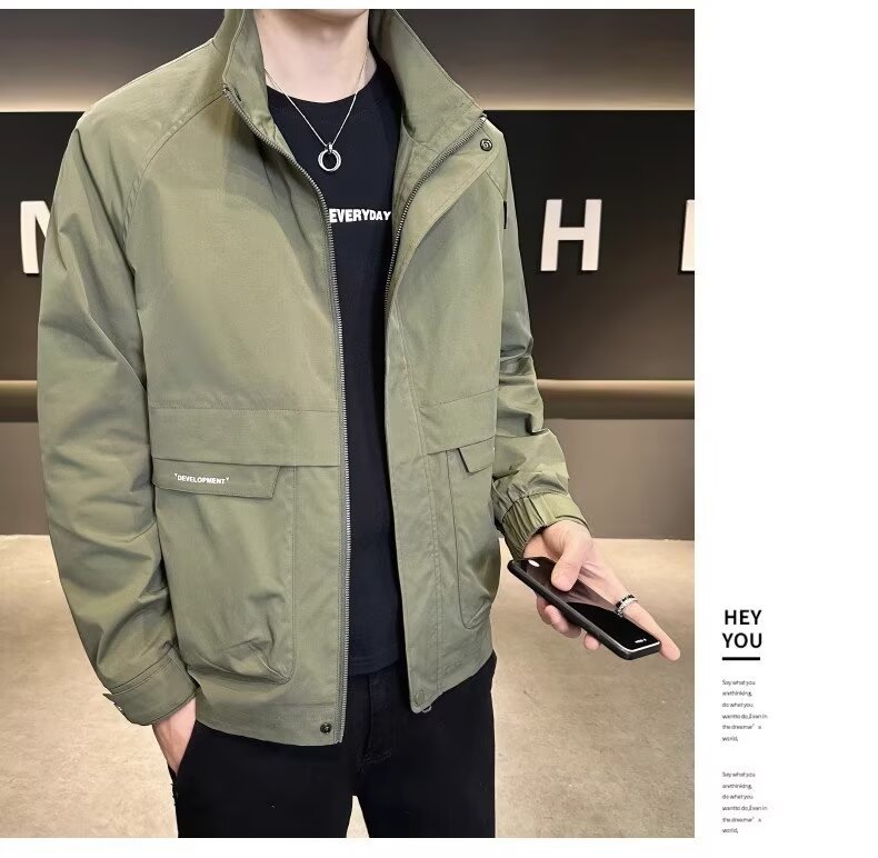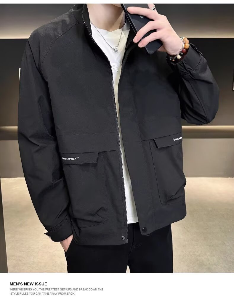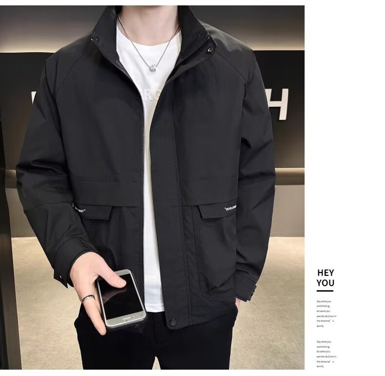 공장 직접 판매 고품질 남성 다용도 캐주얼 재킷, 패셔너블하고 멋진 한국 스타일 심플 스탠드 칼라 재킷 트렌디 브랜드스토어 가기