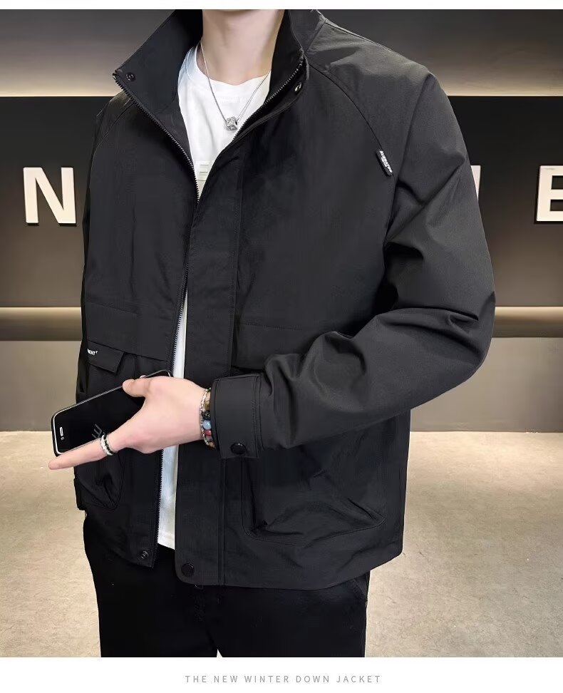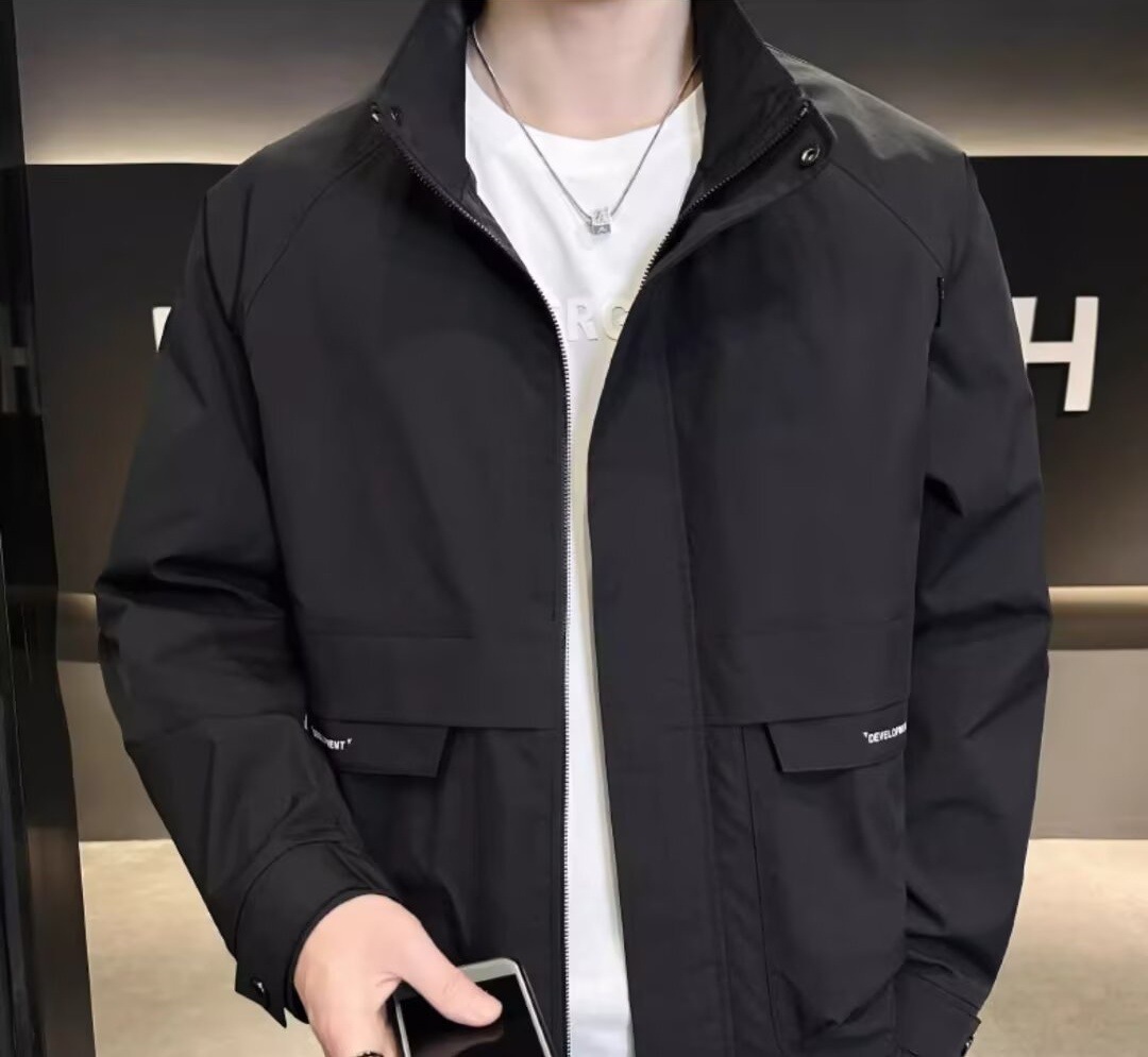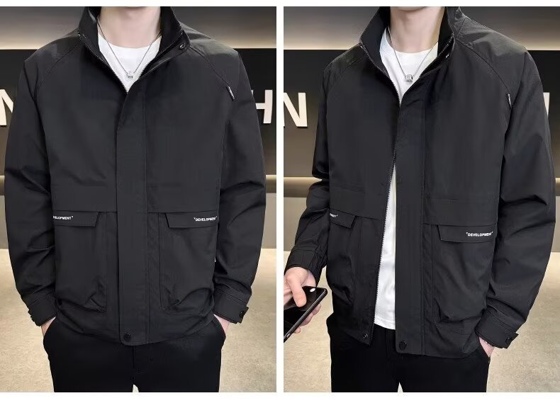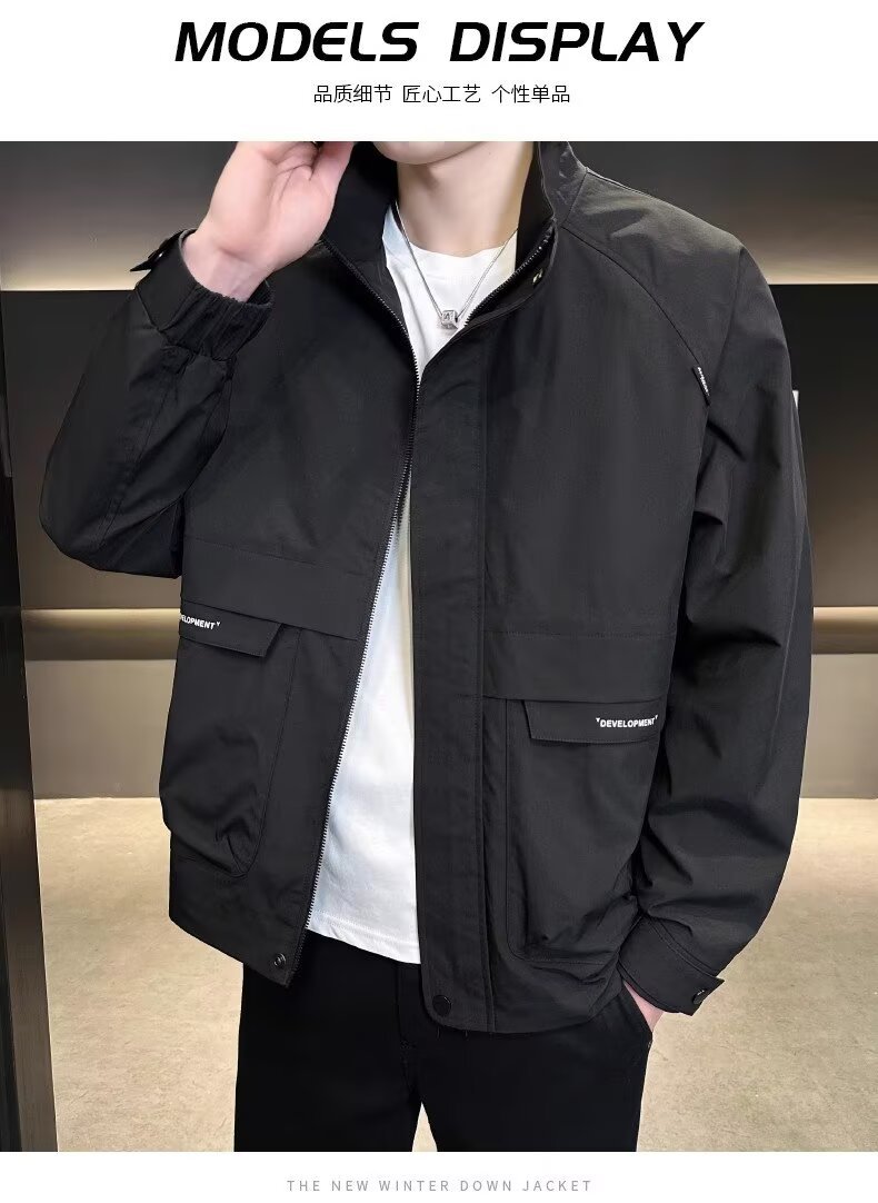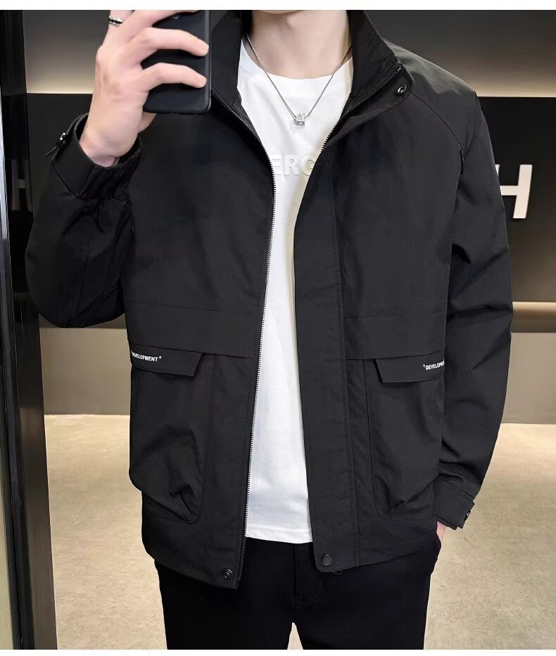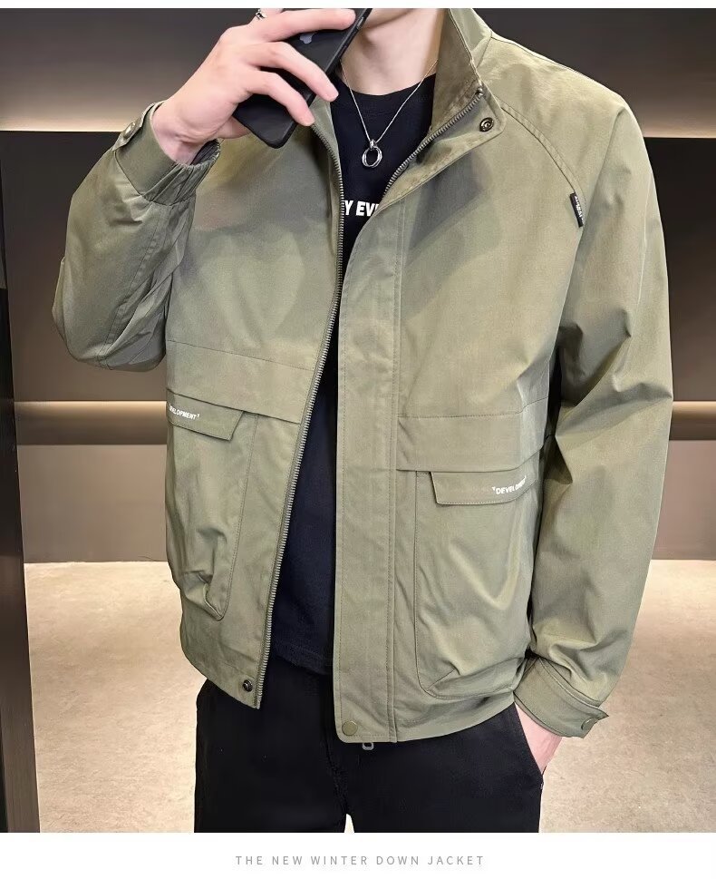 공장 직접 판매 고품질 남성 다용도 캐주얼 재킷, 패셔너블하고 멋진 한국 스타일 심플 스탠드 칼라 재킷 트렌디 브랜드스토어 가기