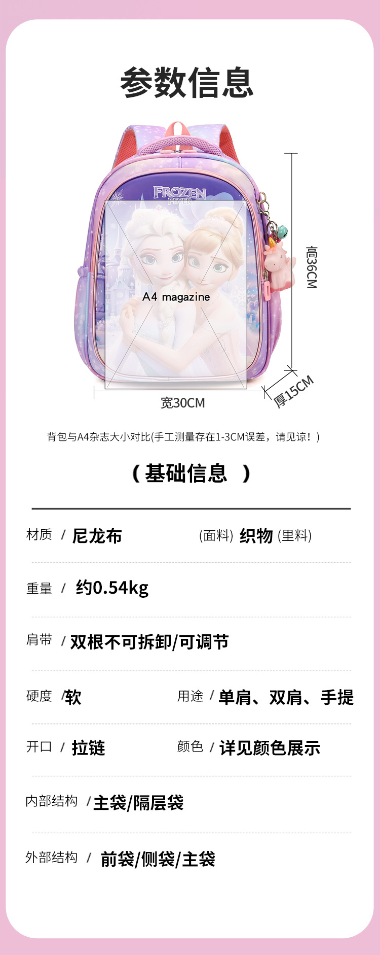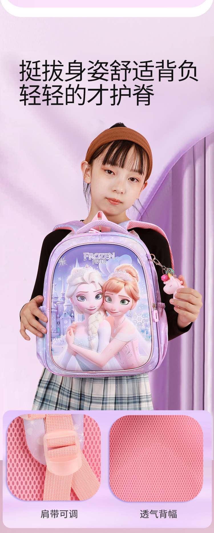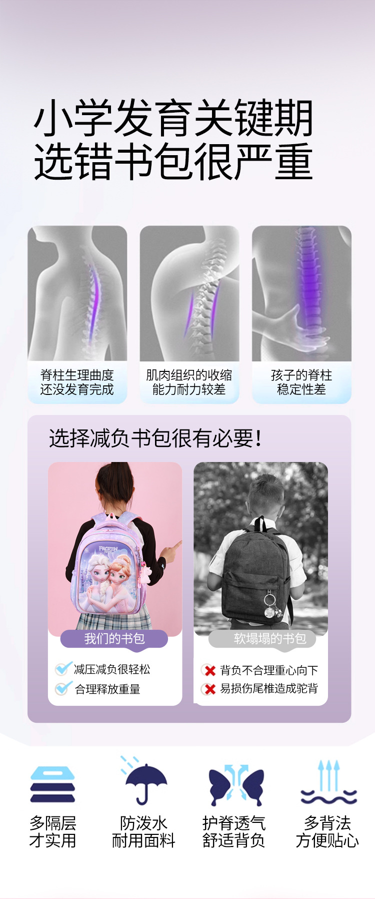 어린이 학교 가방 만화 유치원 중급 및 대규모 학급 귀여운 아기 학교 가방 소녀 엘사 공주 경량 배낭