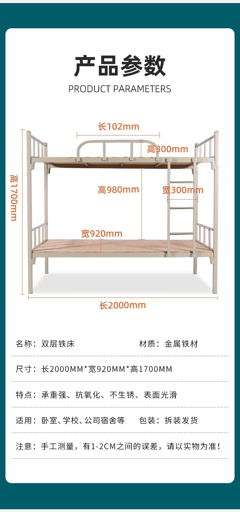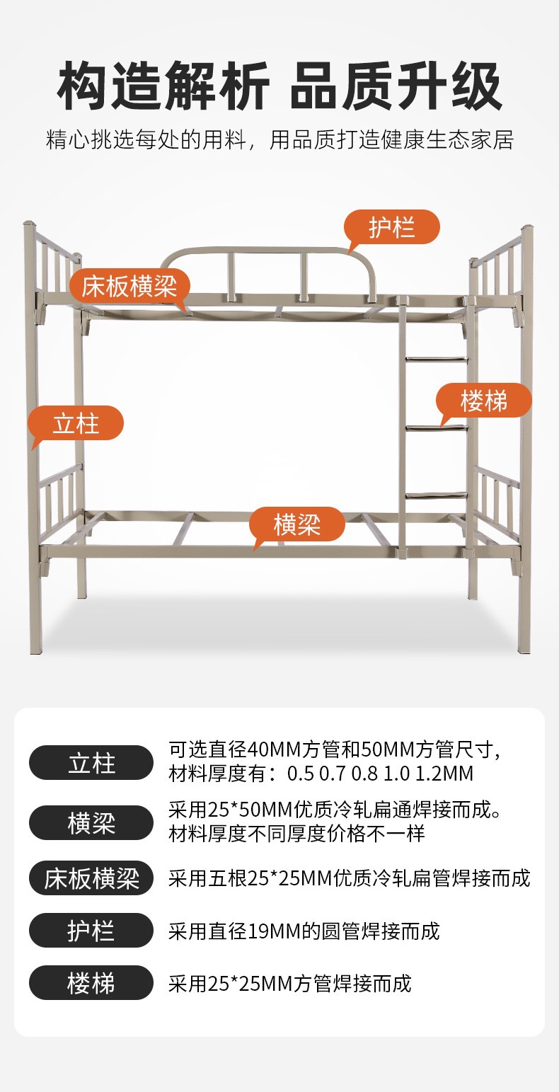 두꺼운 이층 철제 침대, 이층 침대, 학생 기숙사 철제 침대, 직원 아파트 철제 높낮이 철제 침대