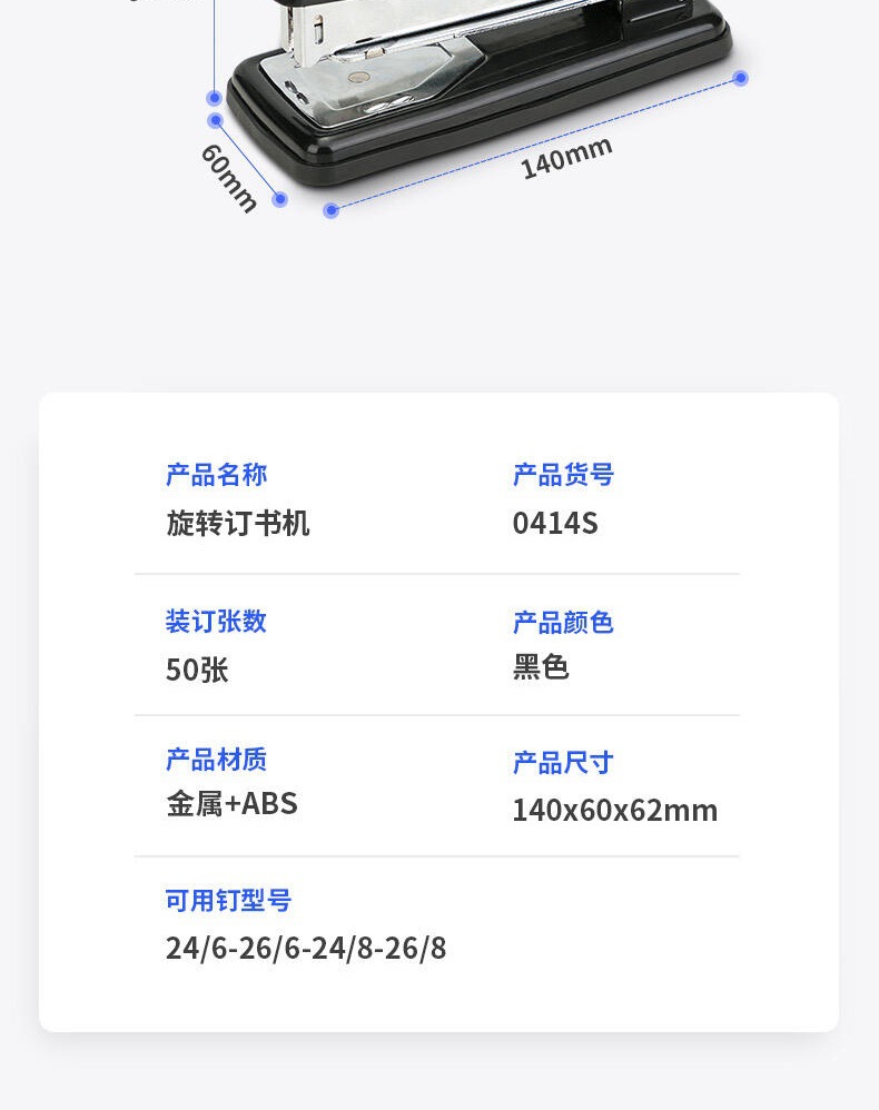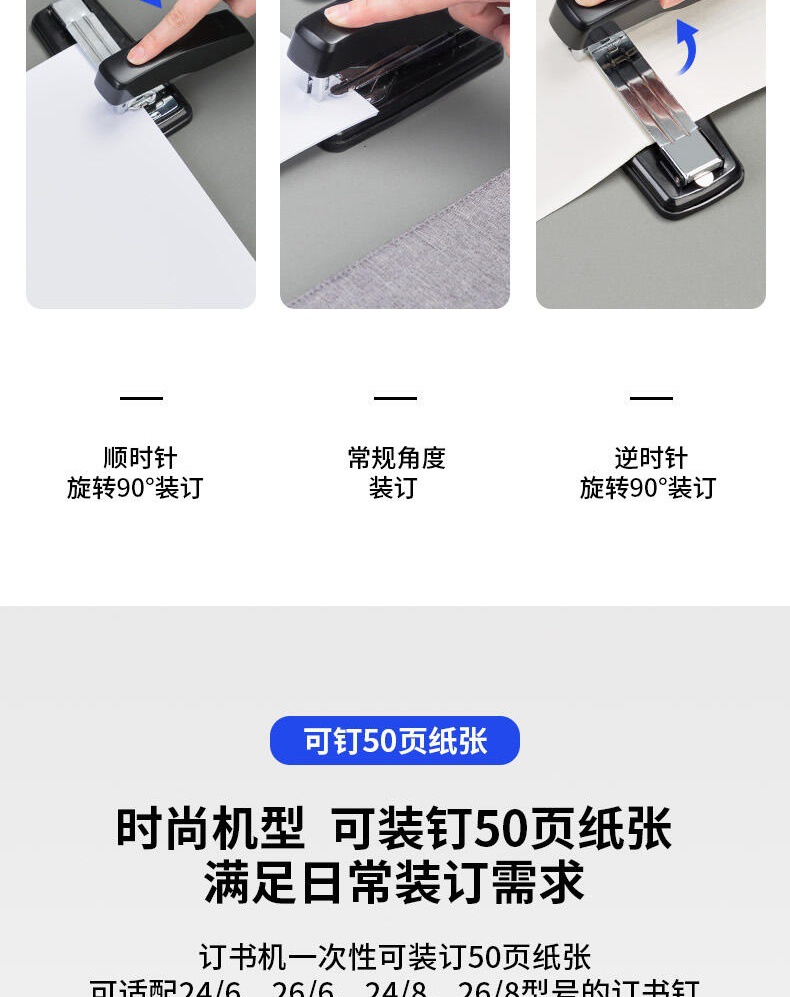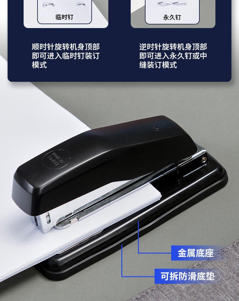 델리 0414S 다중 모드 회전식 스테이플러는 50페이지의 두꺼운 베이스 스테이플러를 바느질하여 파일을 바인딩할 수 있습니다.스토어 가기