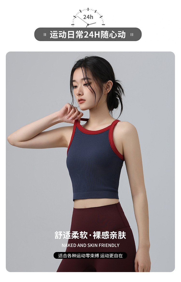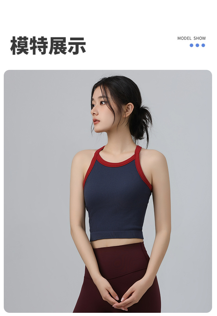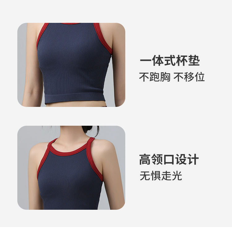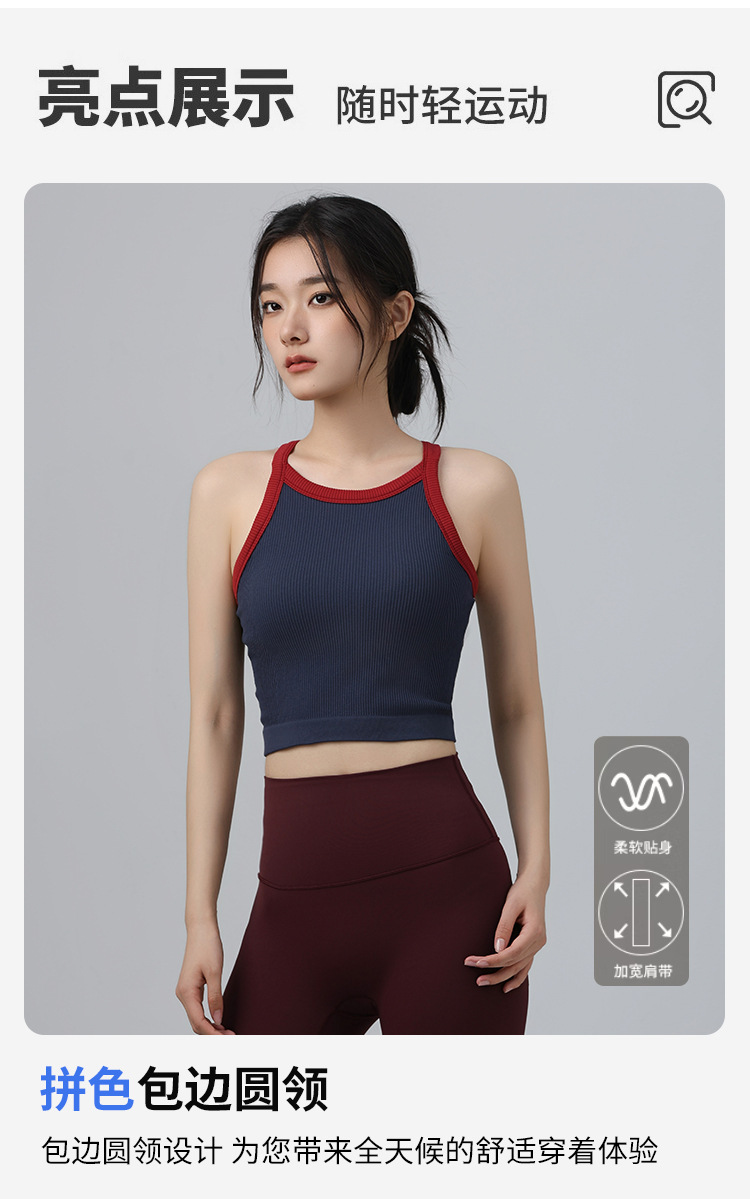 2025 가을 봄 새로운 대비 색상 고탄성 스포츠 브래지어 여성 충격 방지 피트니스 브래지어 고정 컵 요가 의류 조끼