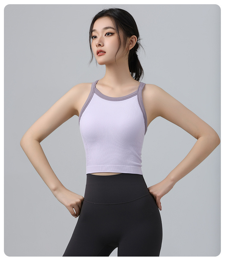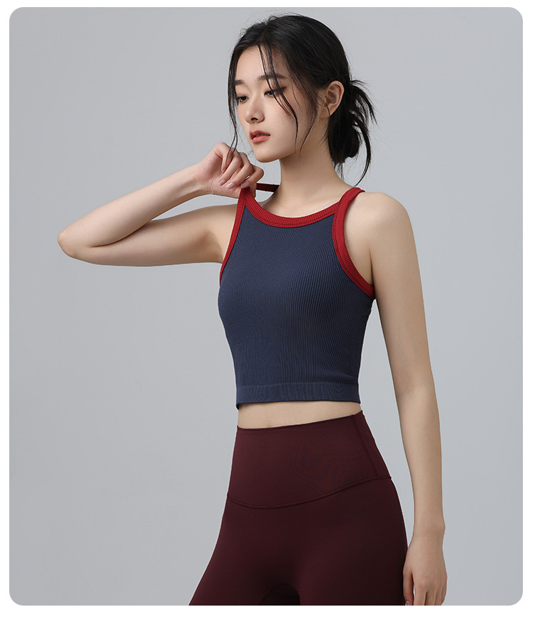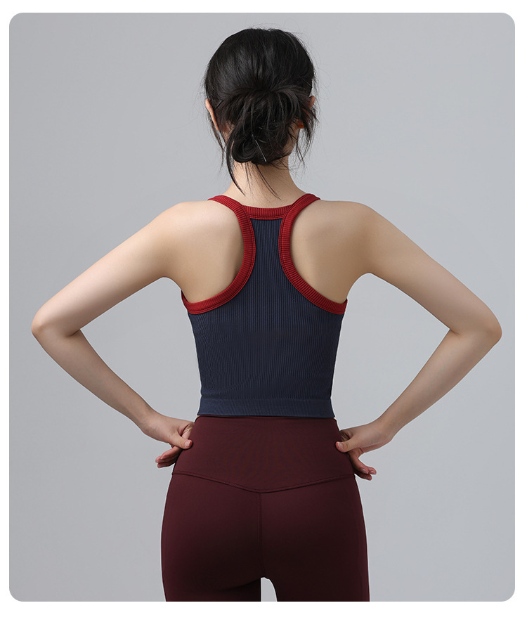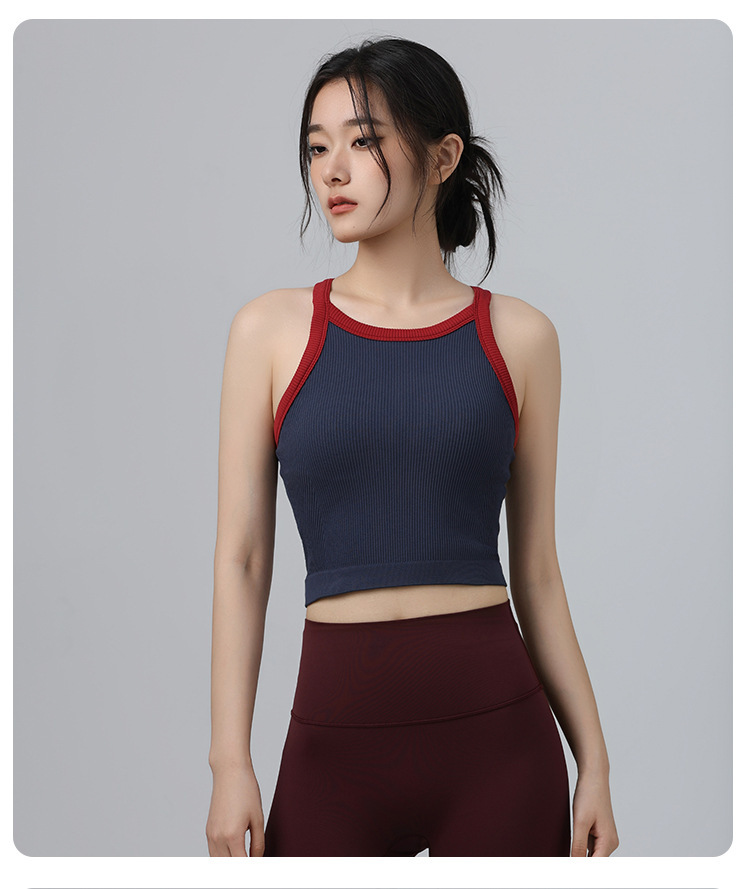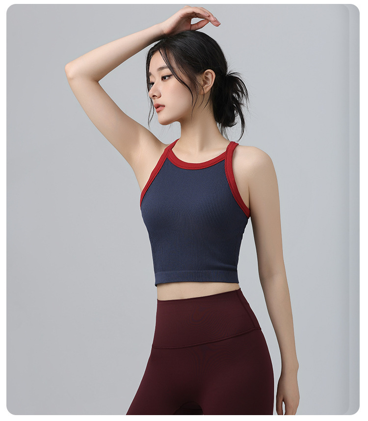 2025 가을 봄 새로운 대비 색상 고탄성 스포츠 브래지어 여성 충격 방지 피트니스 브래지어 고정 컵 요가 의류 조끼