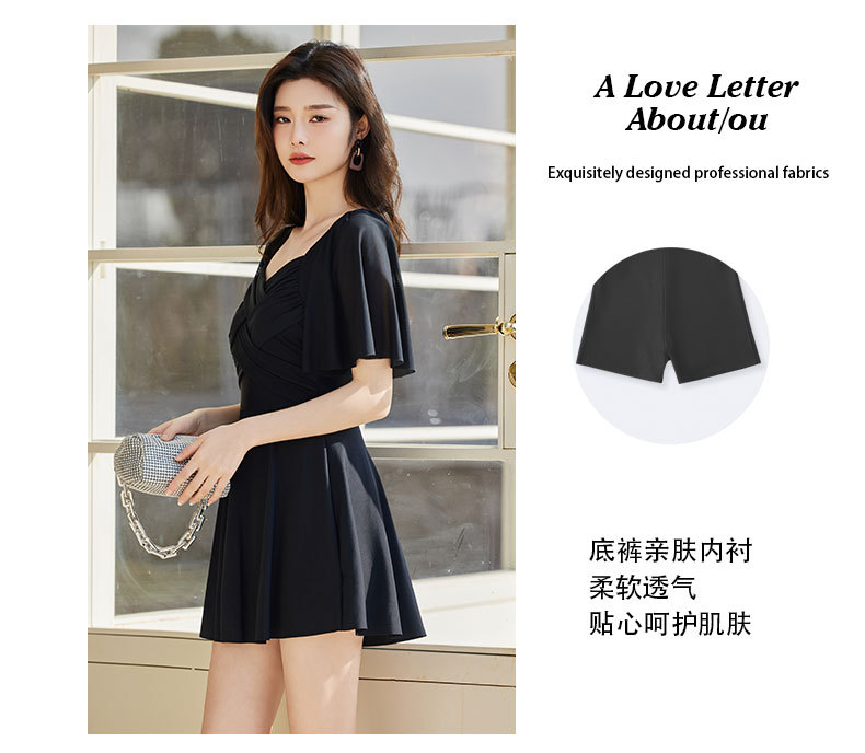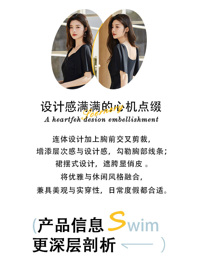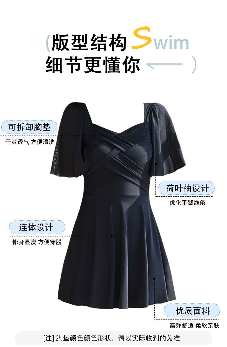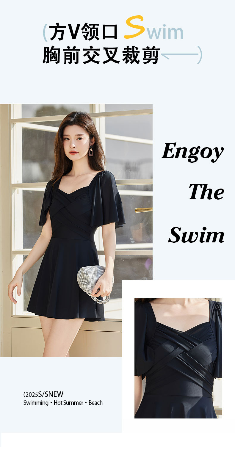 아름다운 여성 수영복, 보수적인 드레스 스타일, 살을 커버하고 날씬해 보이는 2025년 신형 온천 고급 원피스 수영복